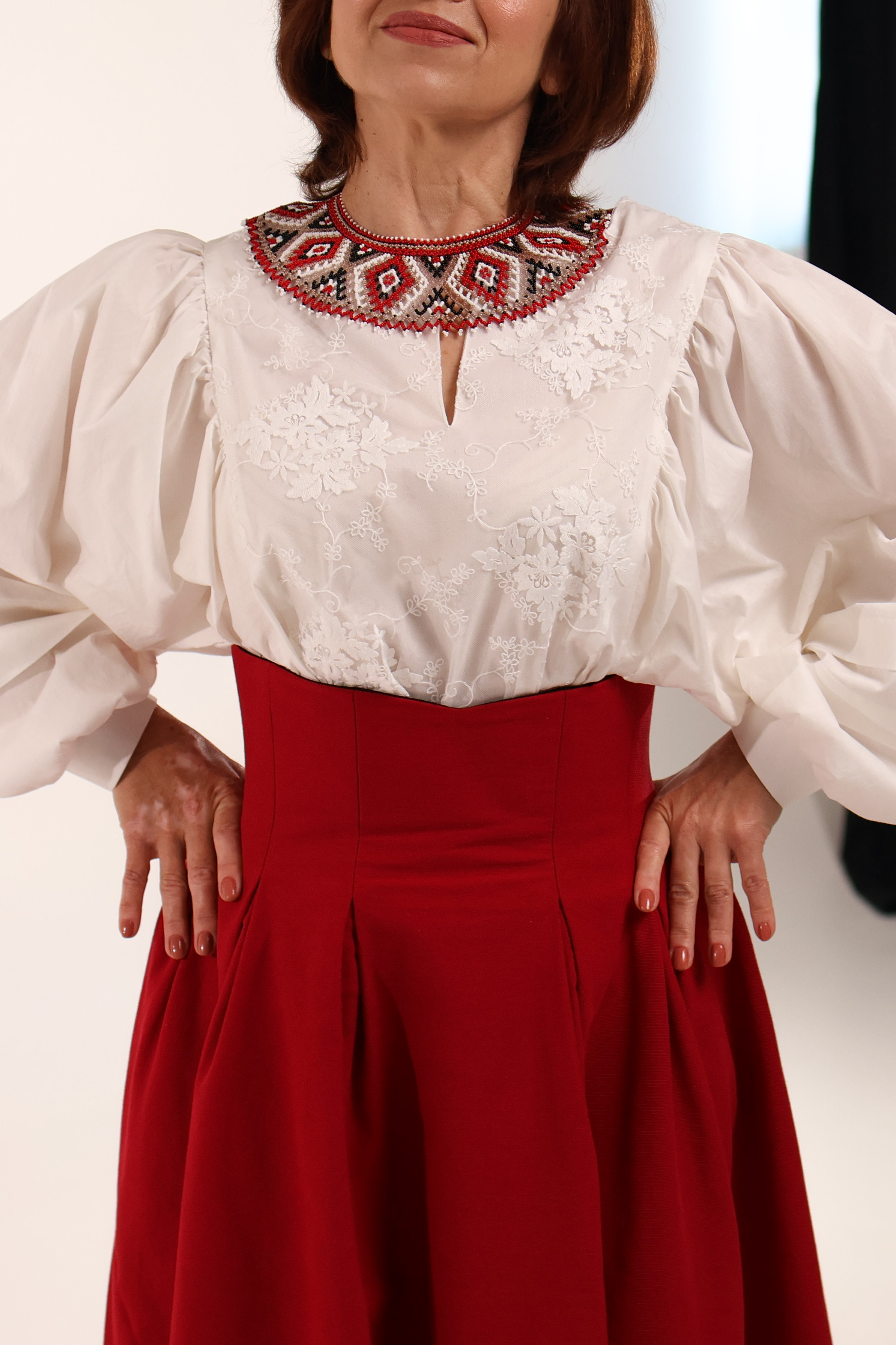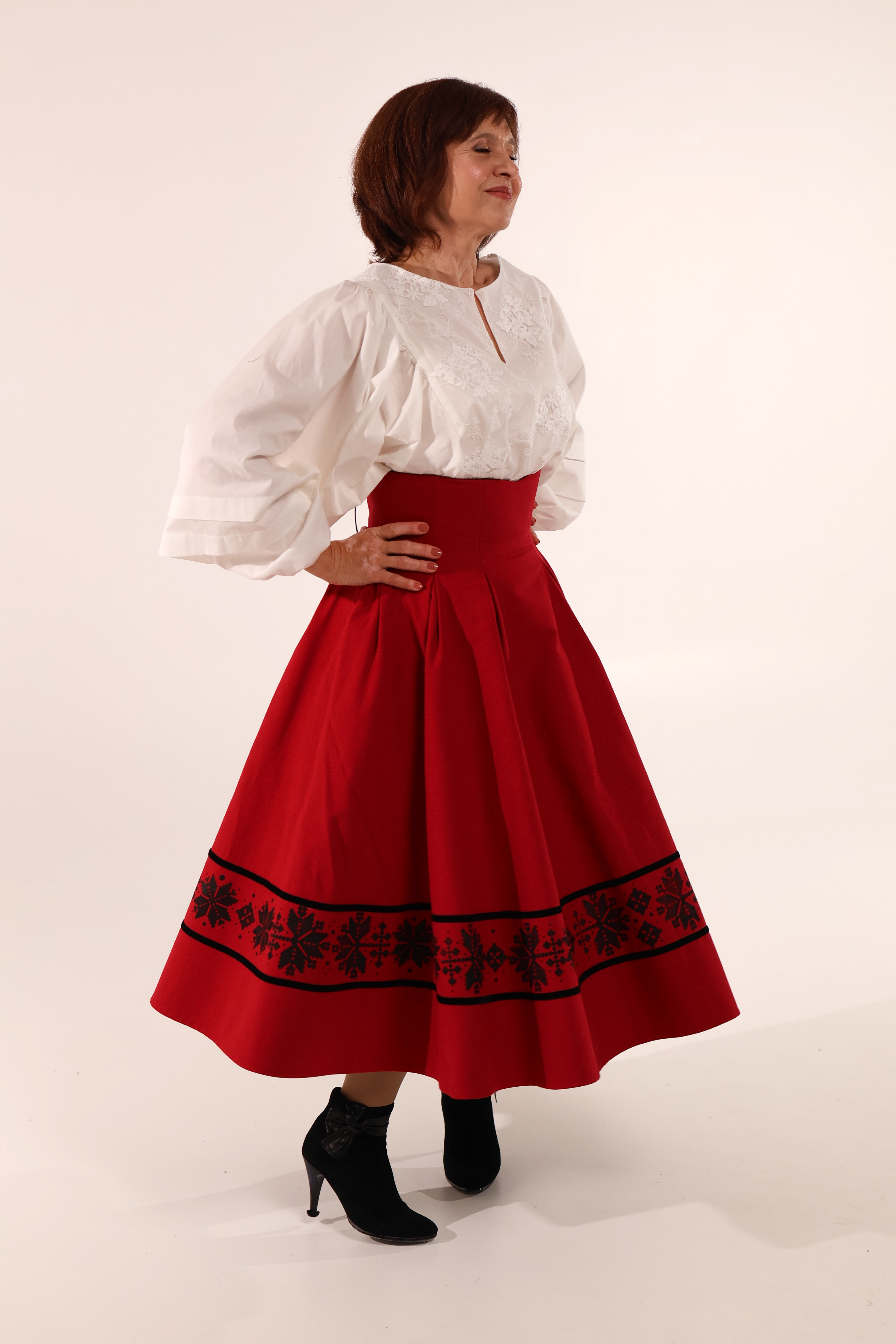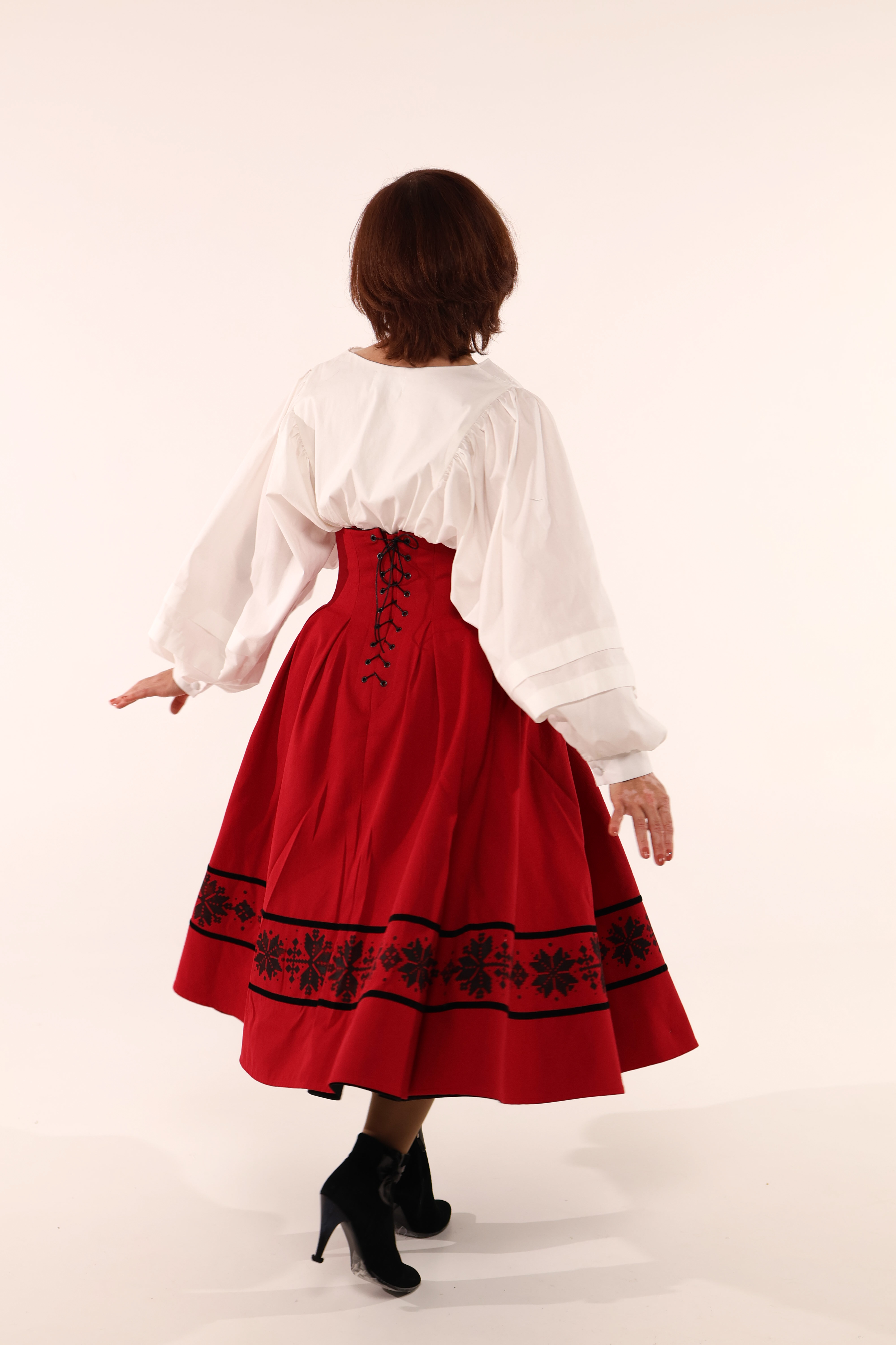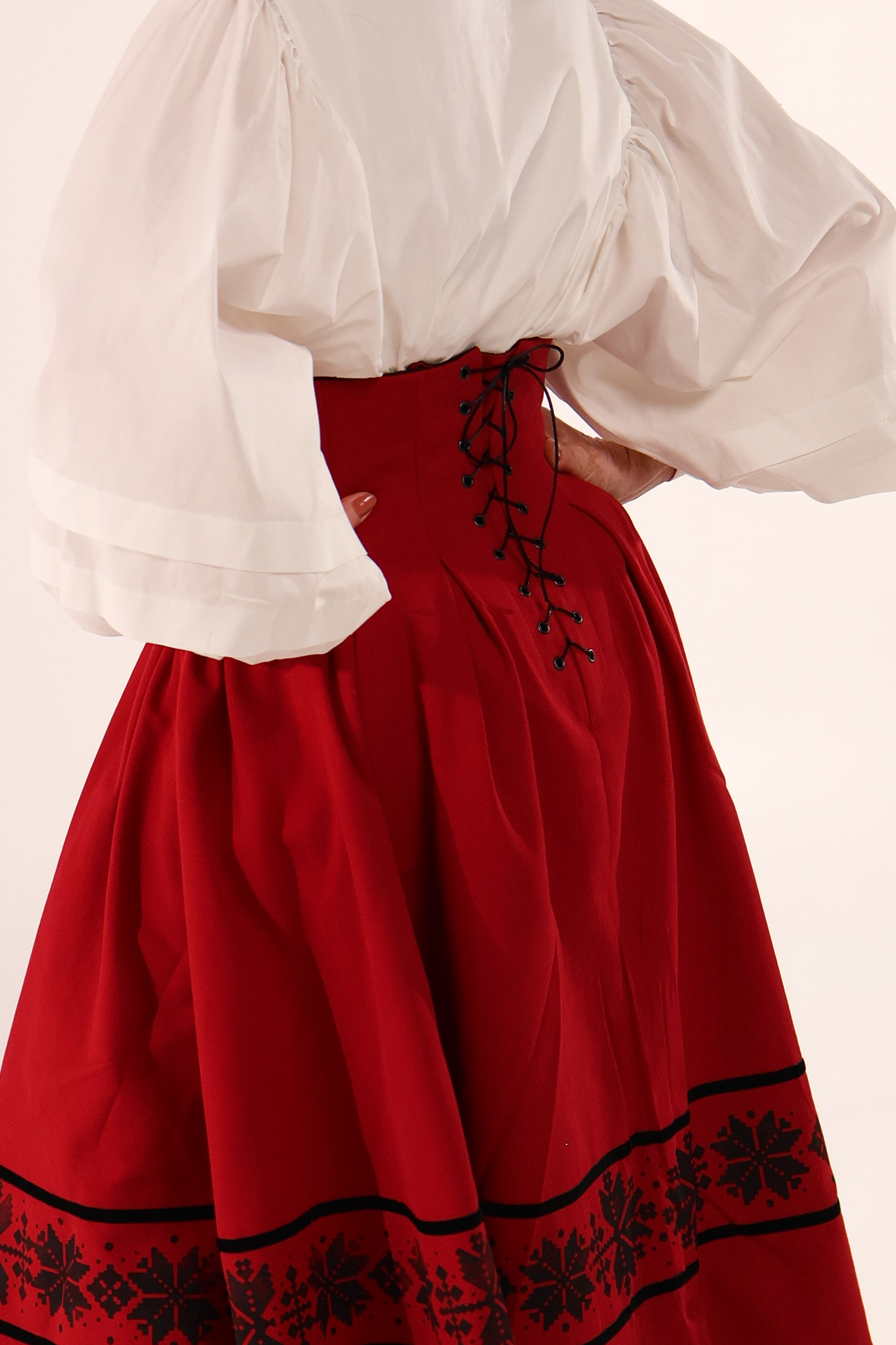 Двостороння спідниця з високим корсетним поясом з вибійкою, червона/чорна