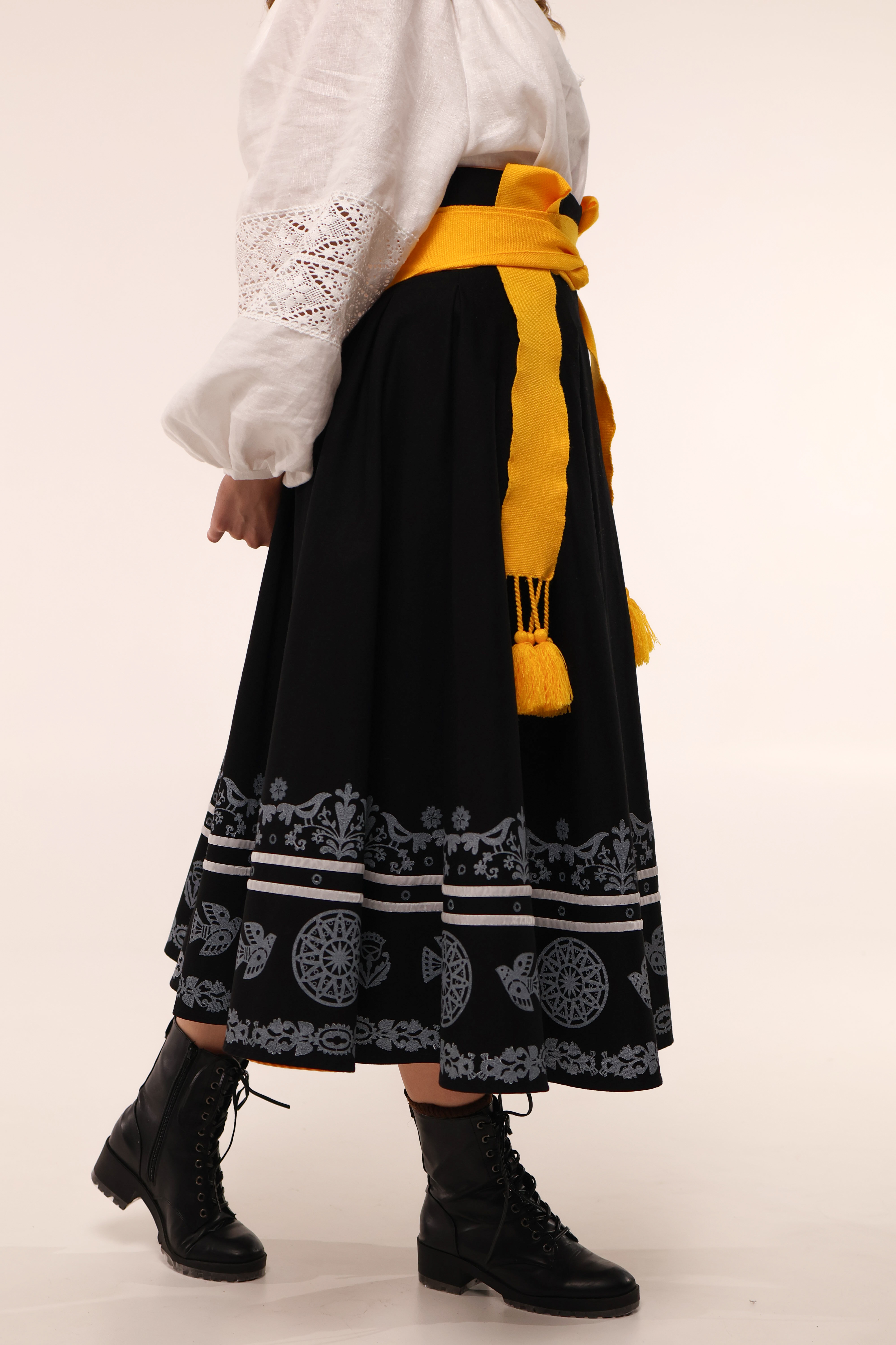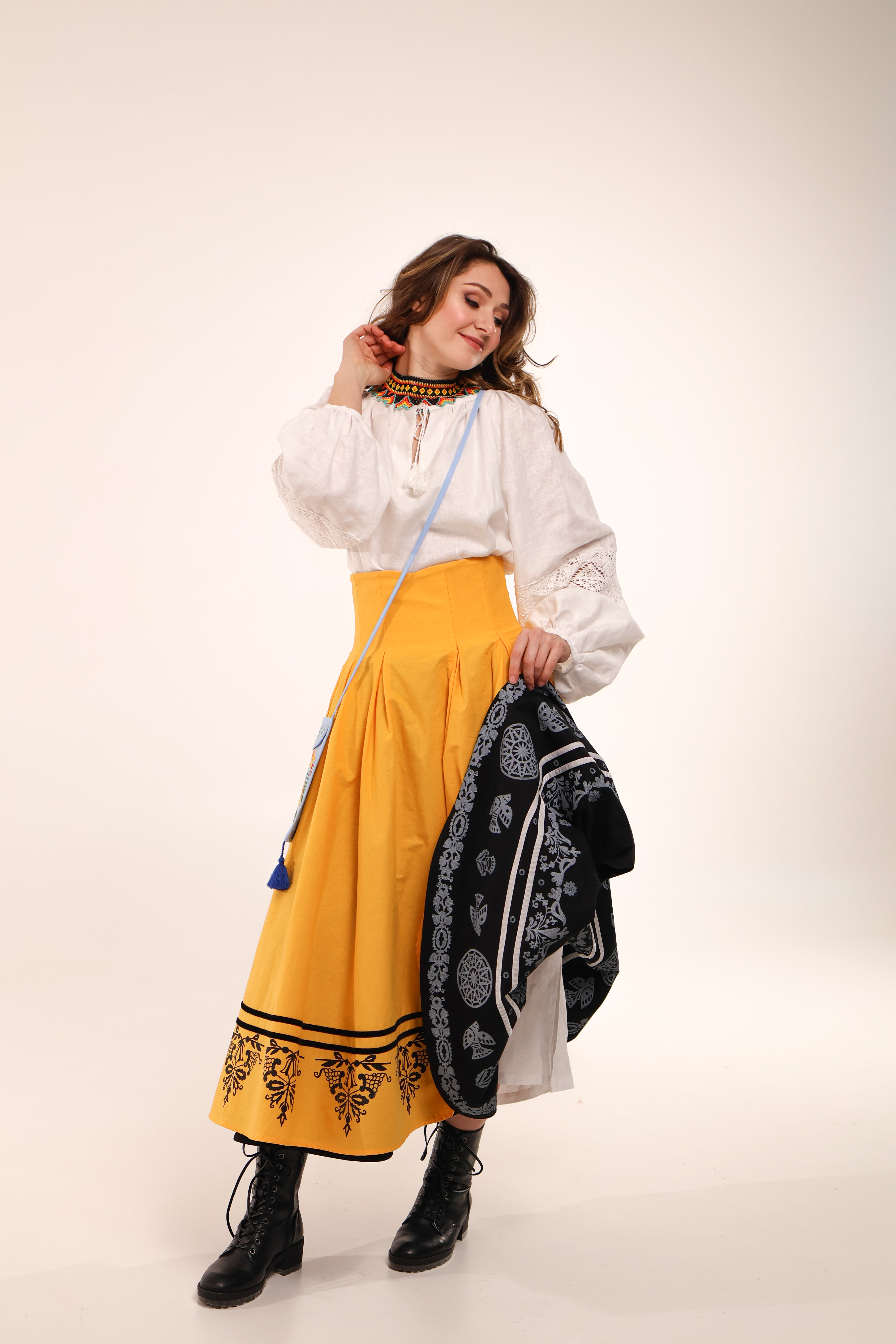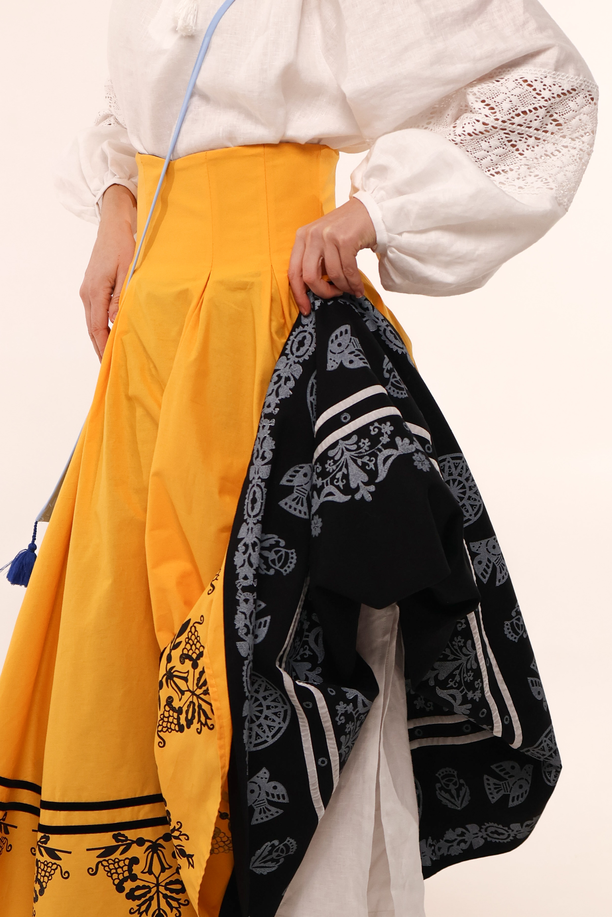 Двостороння спідниця з високим корсетним поясом з вибійкою, чорна/жовта