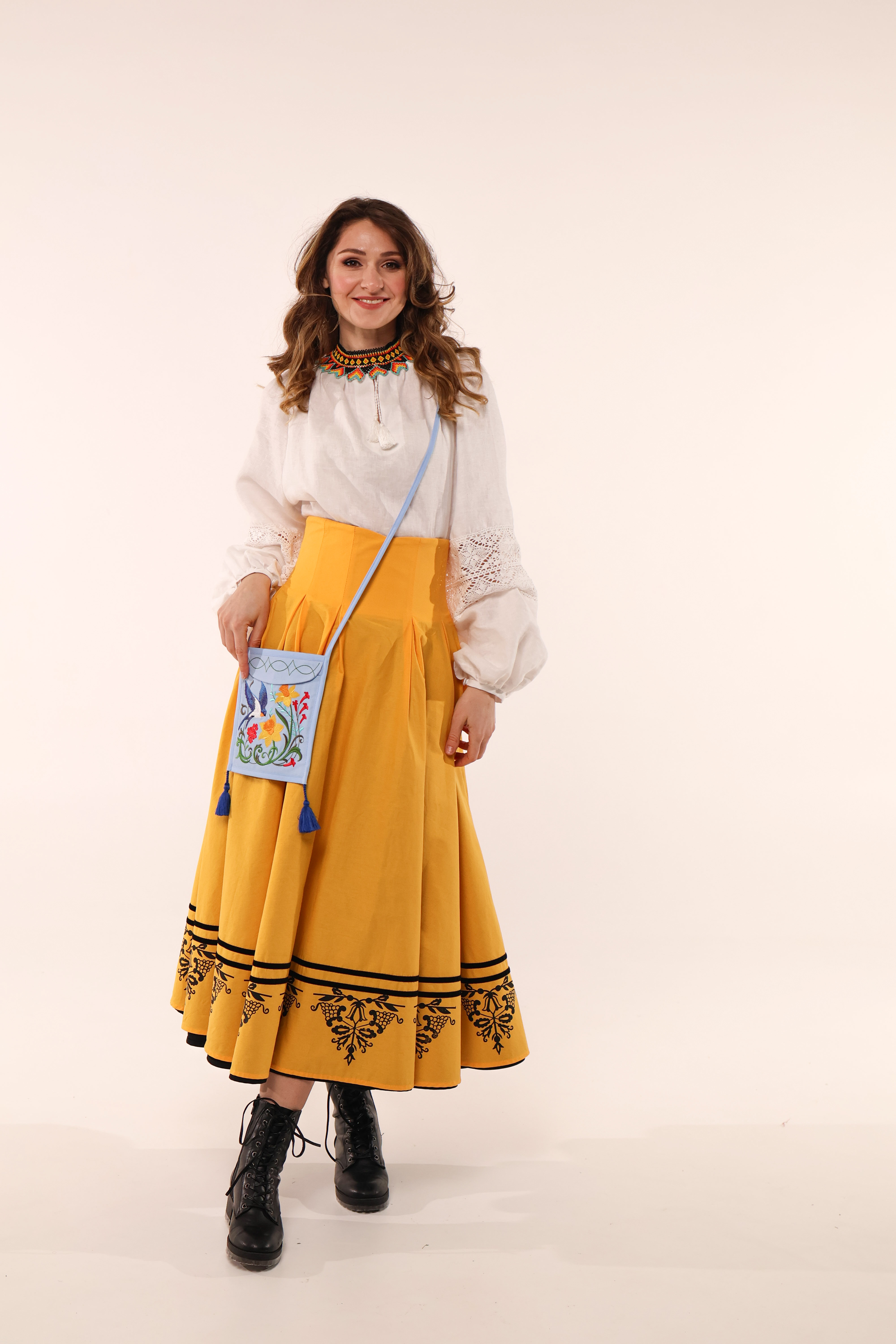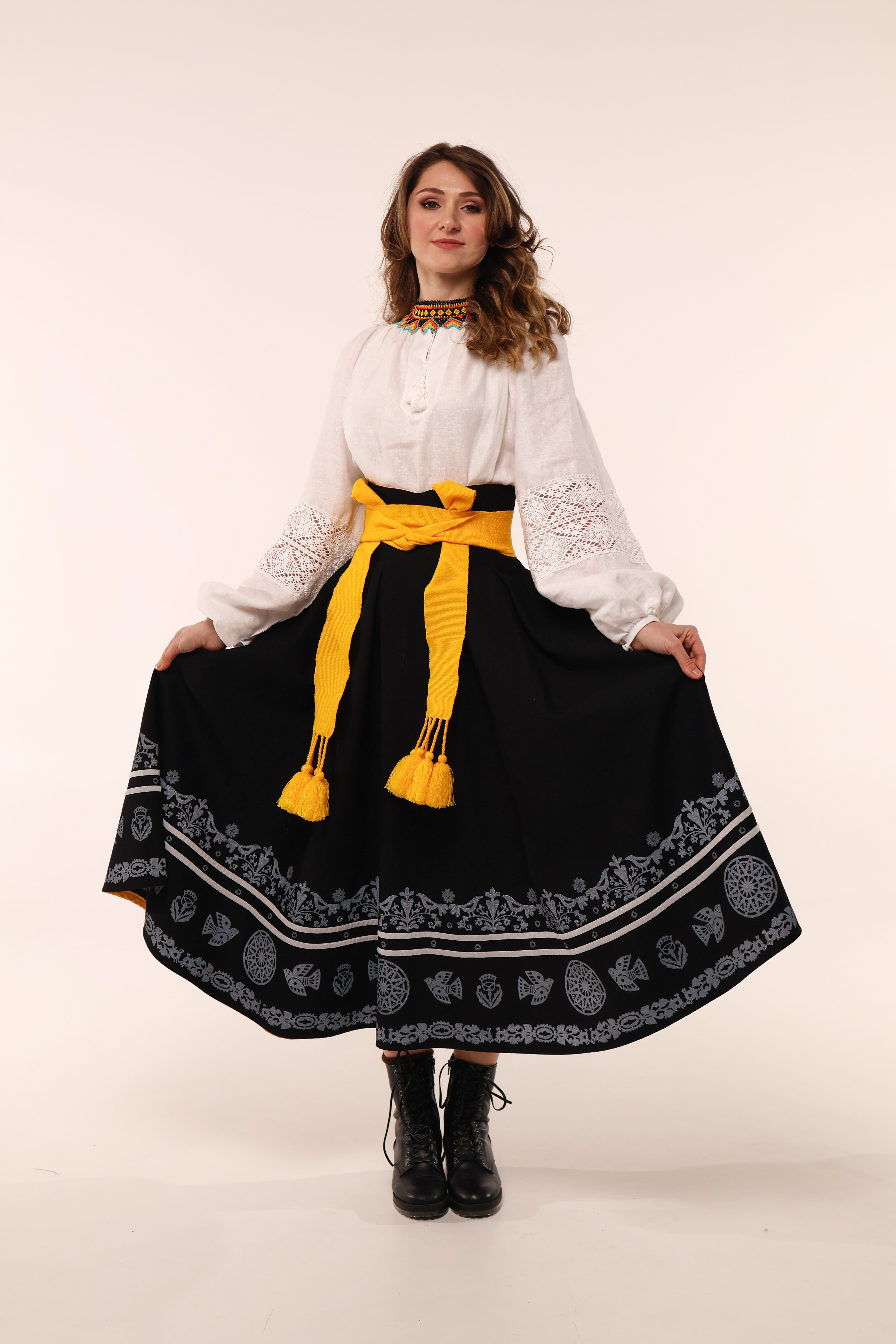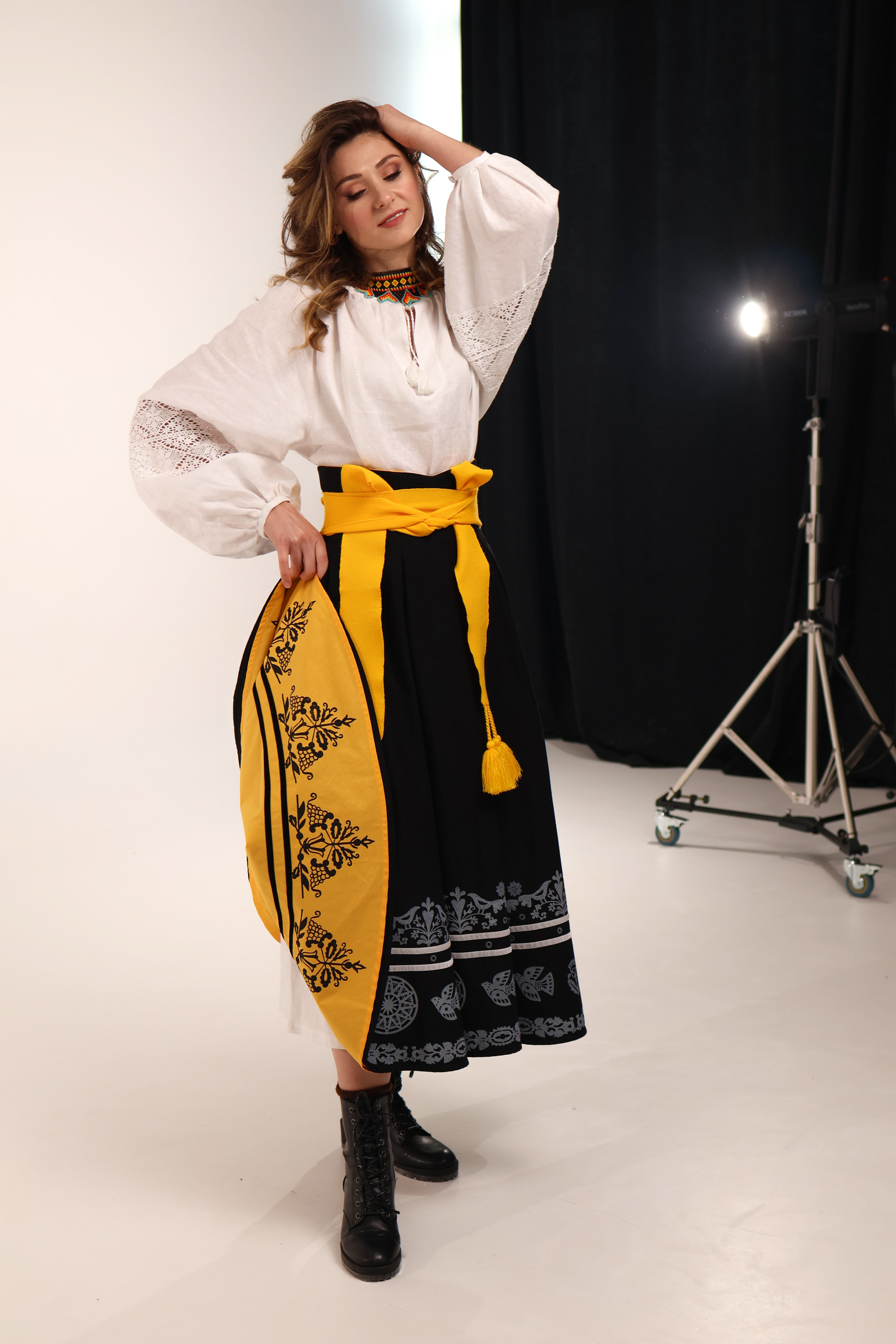 Двостороння спідниця з високим корсетним поясом з вибійкою, чорна/жовта