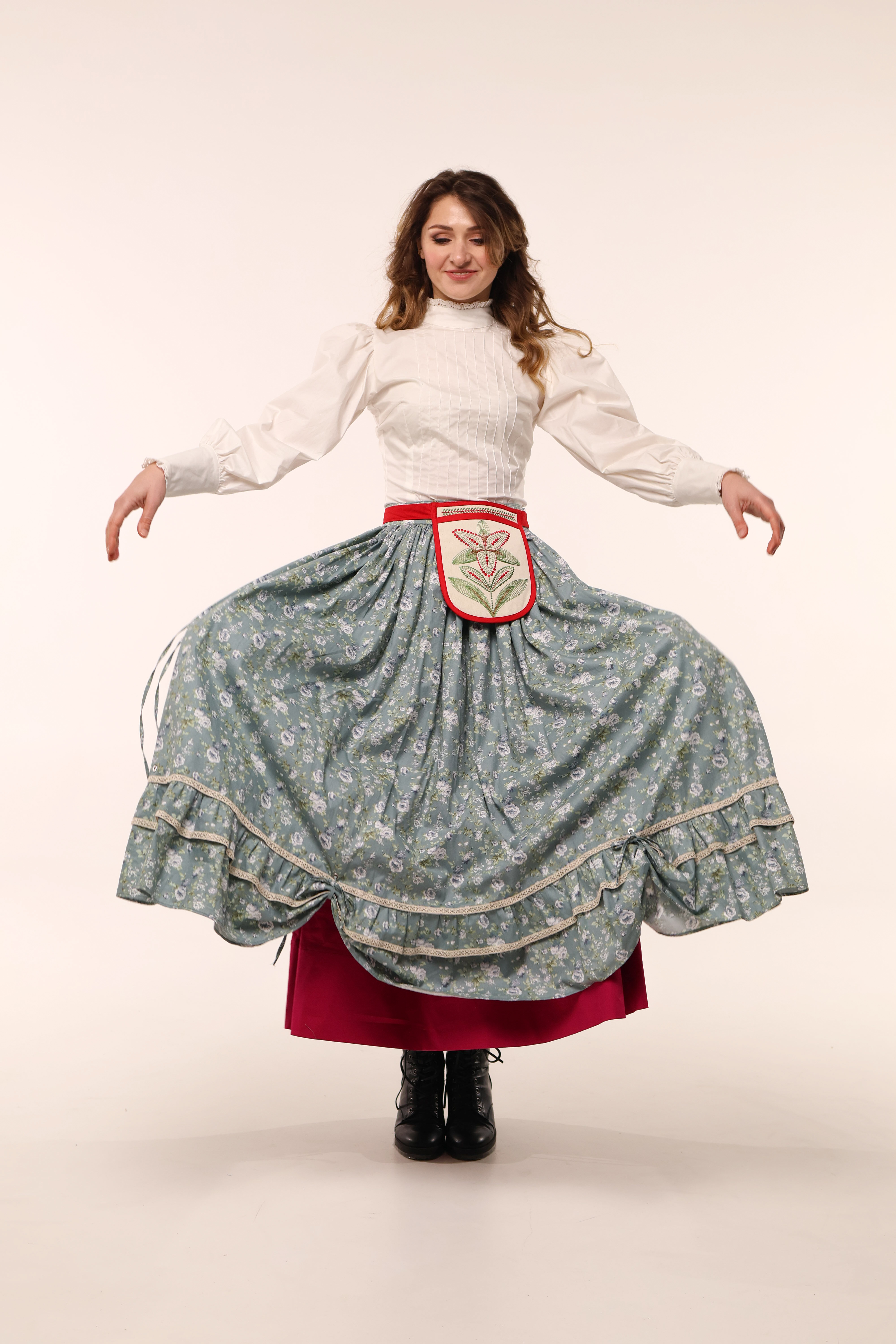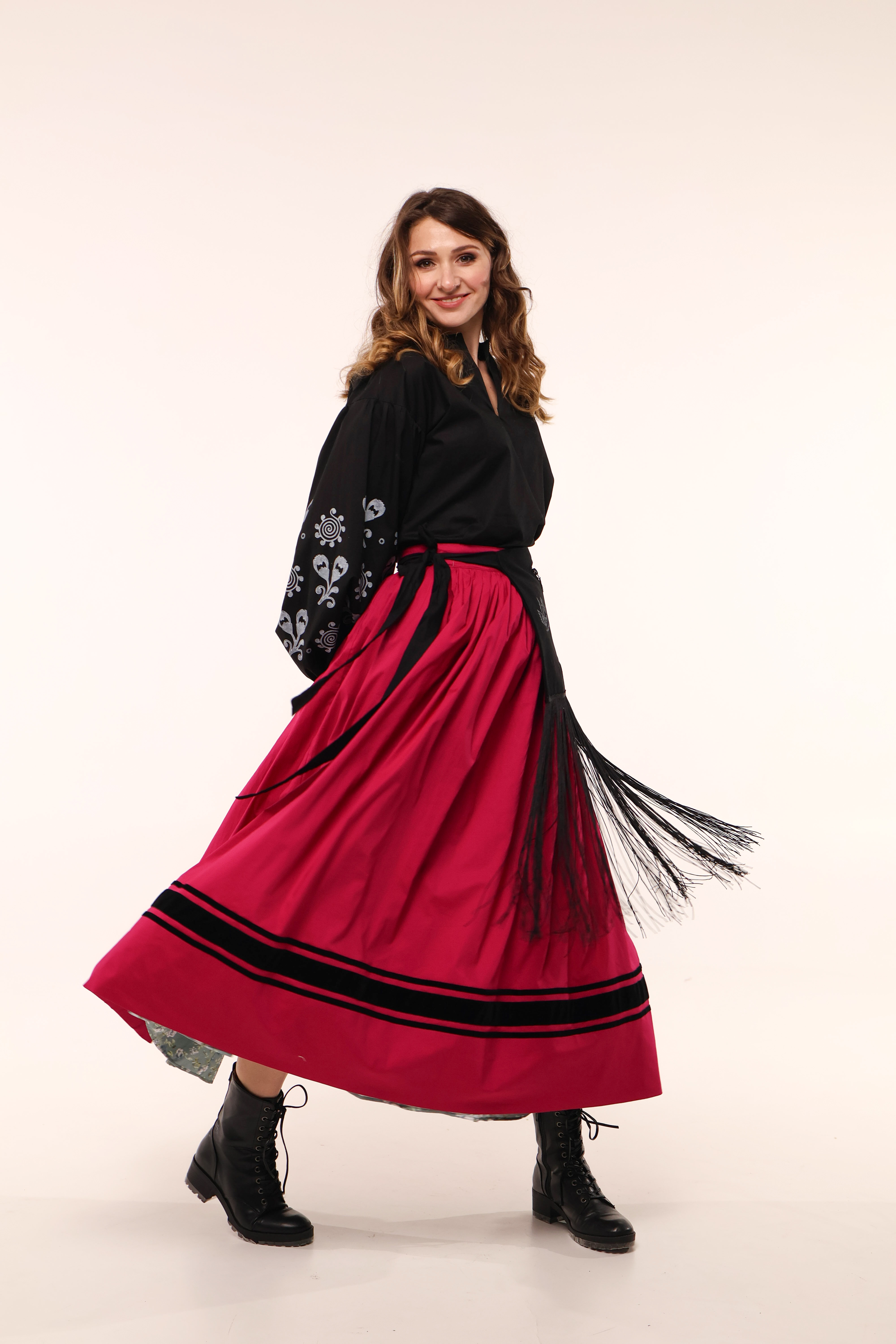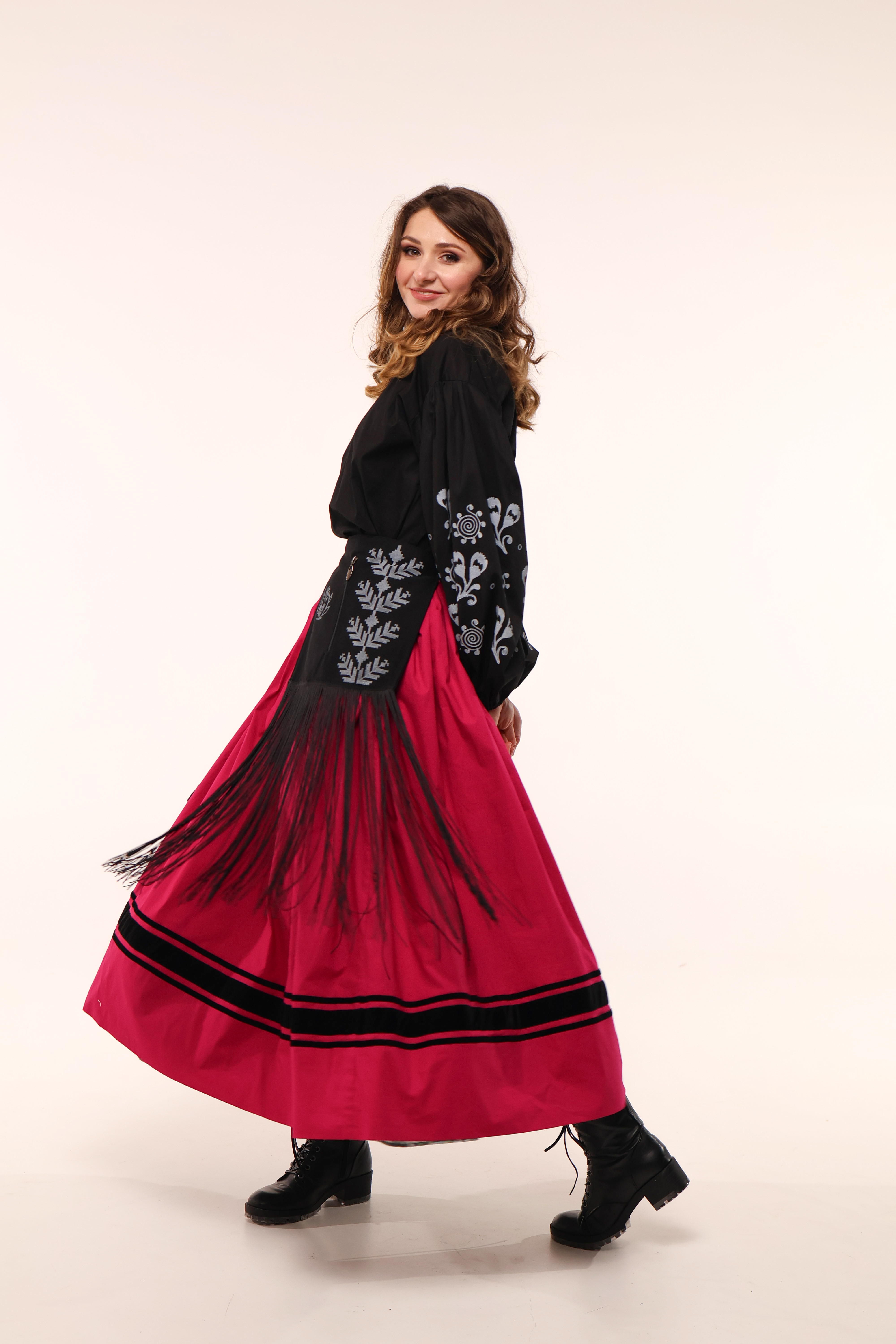 З іншого — яскрава традиційна спідниця.