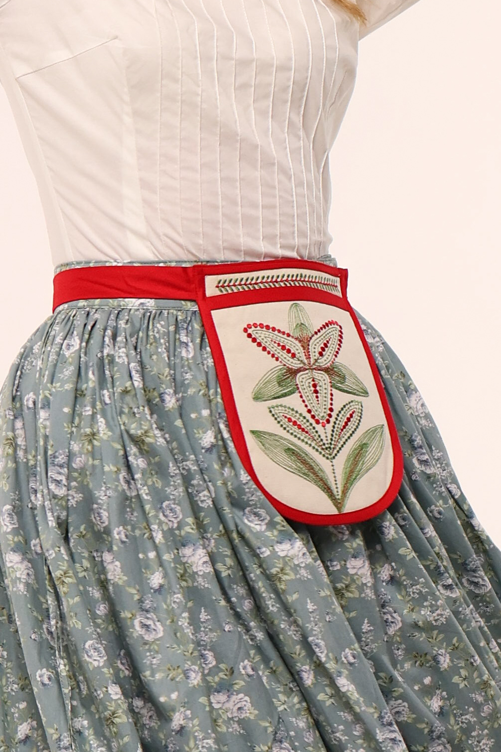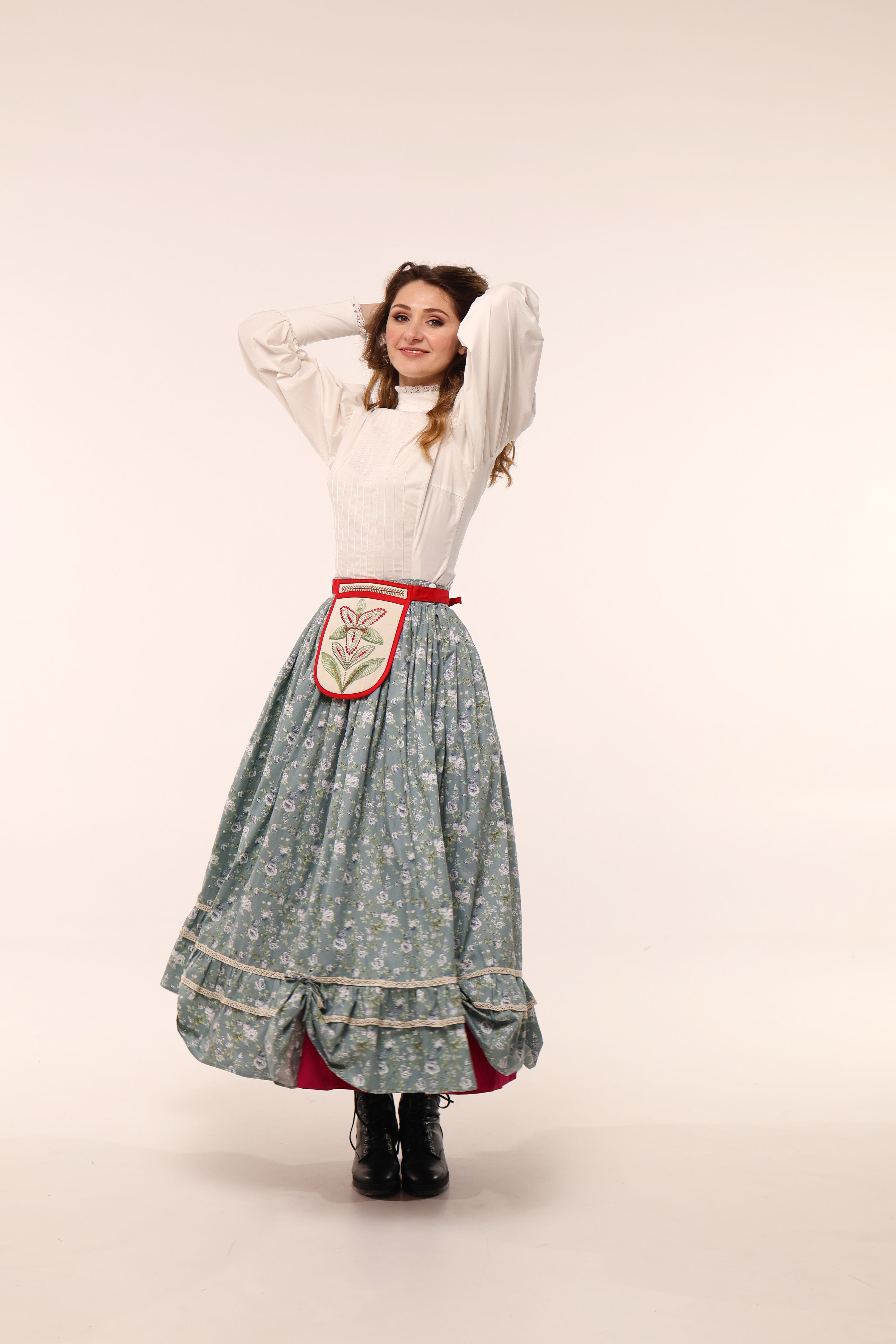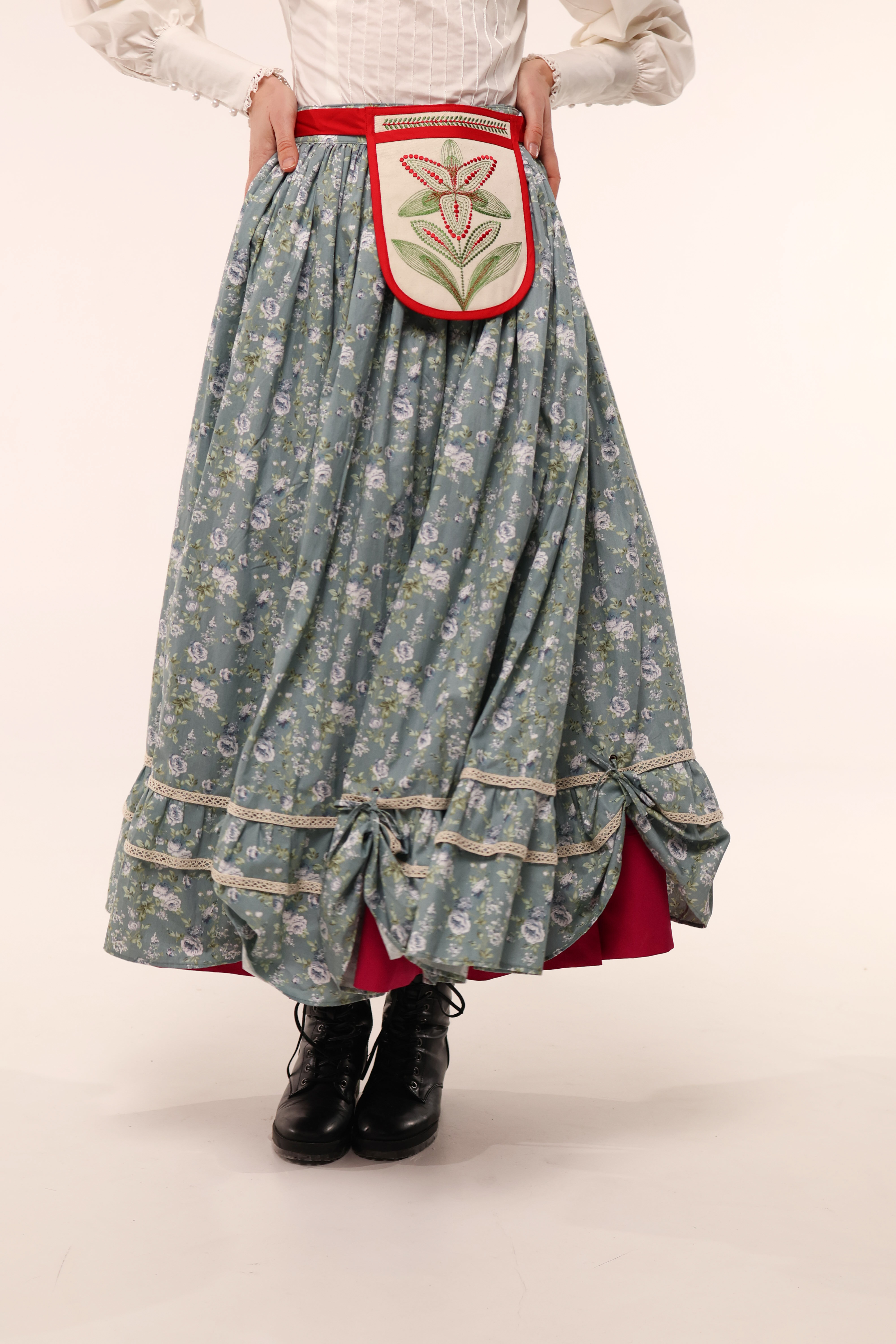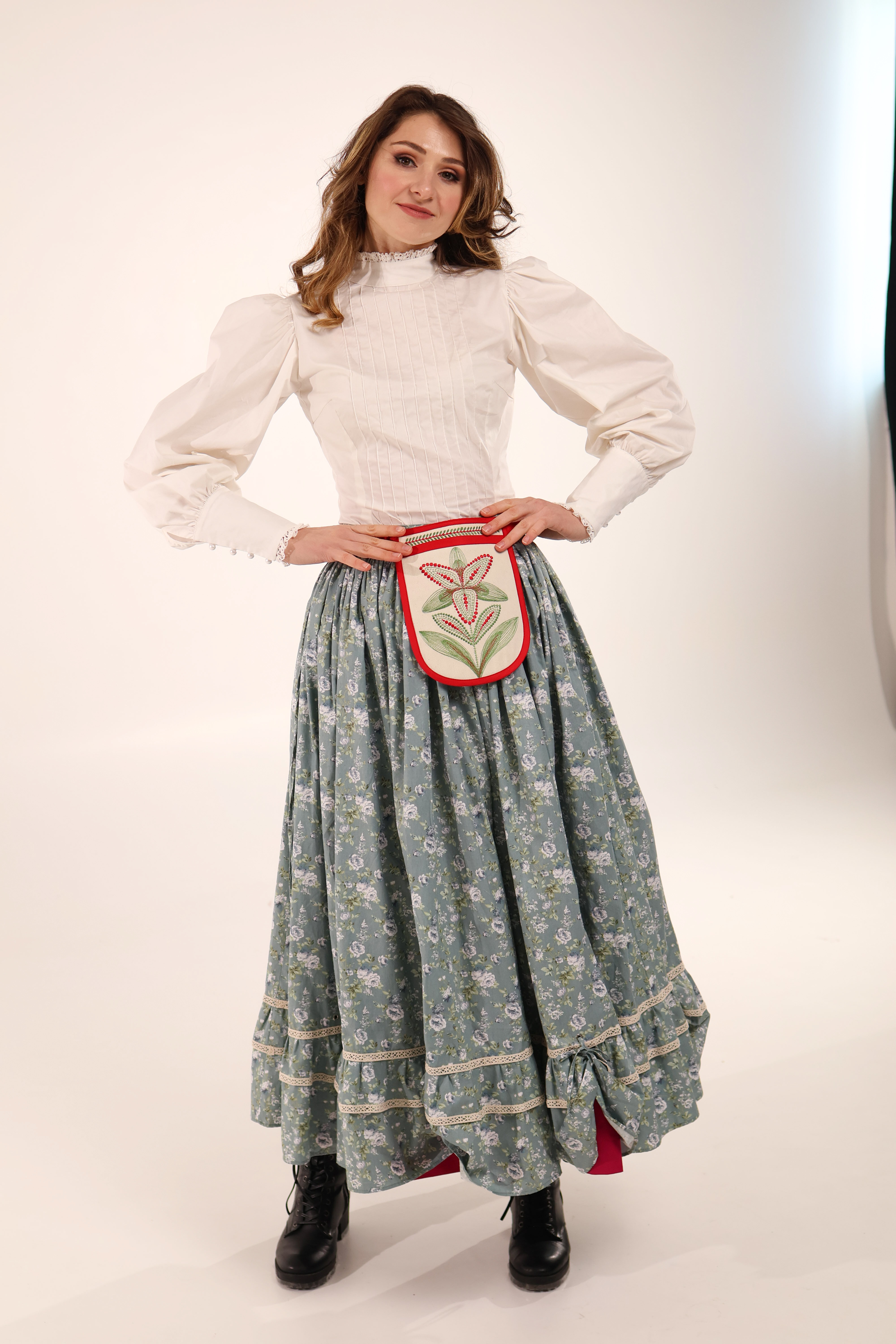 З іншого — яскрава традиційна спідниця.