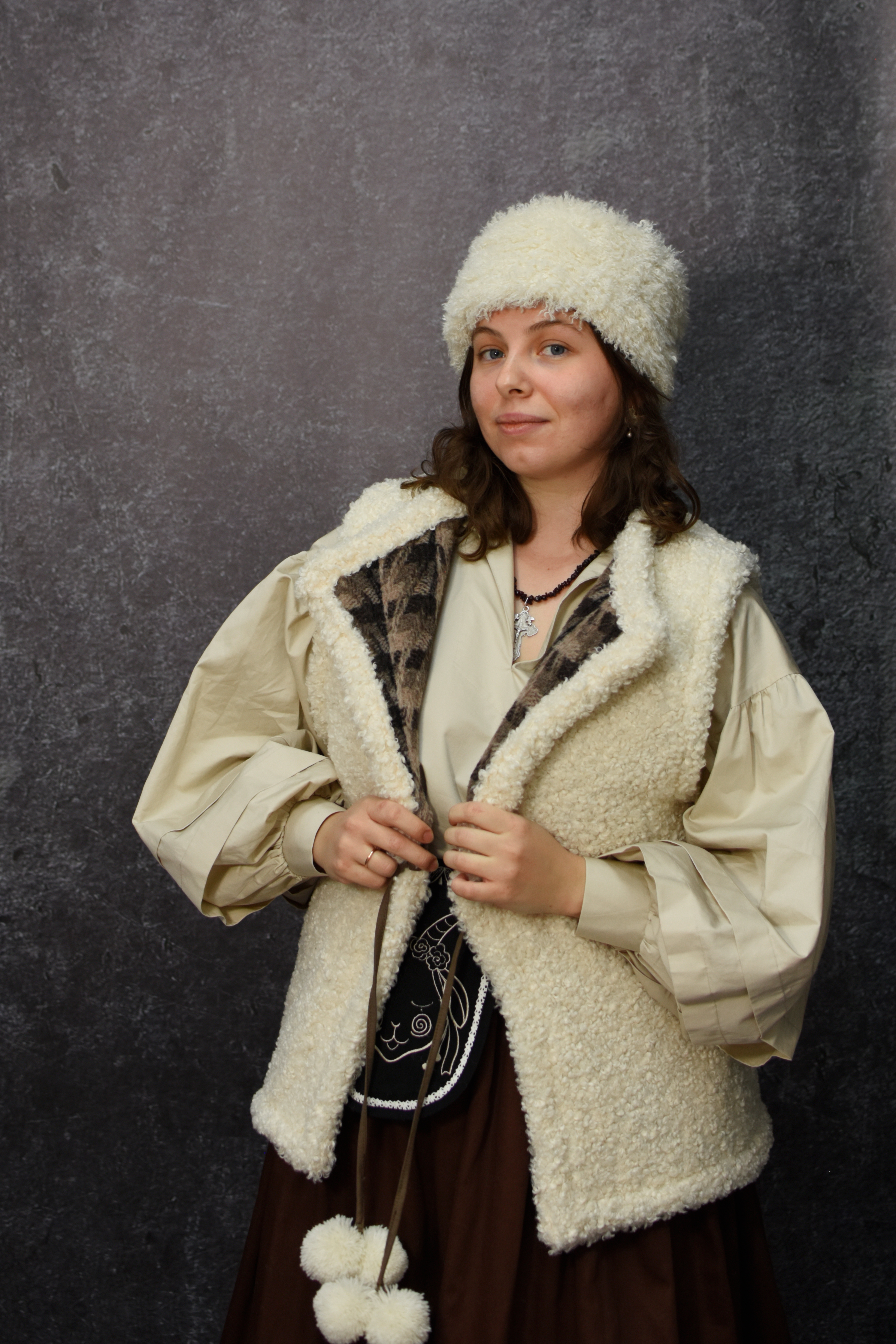 З однієї сторони вовна 90%, з іншої сторни штучне хутро.