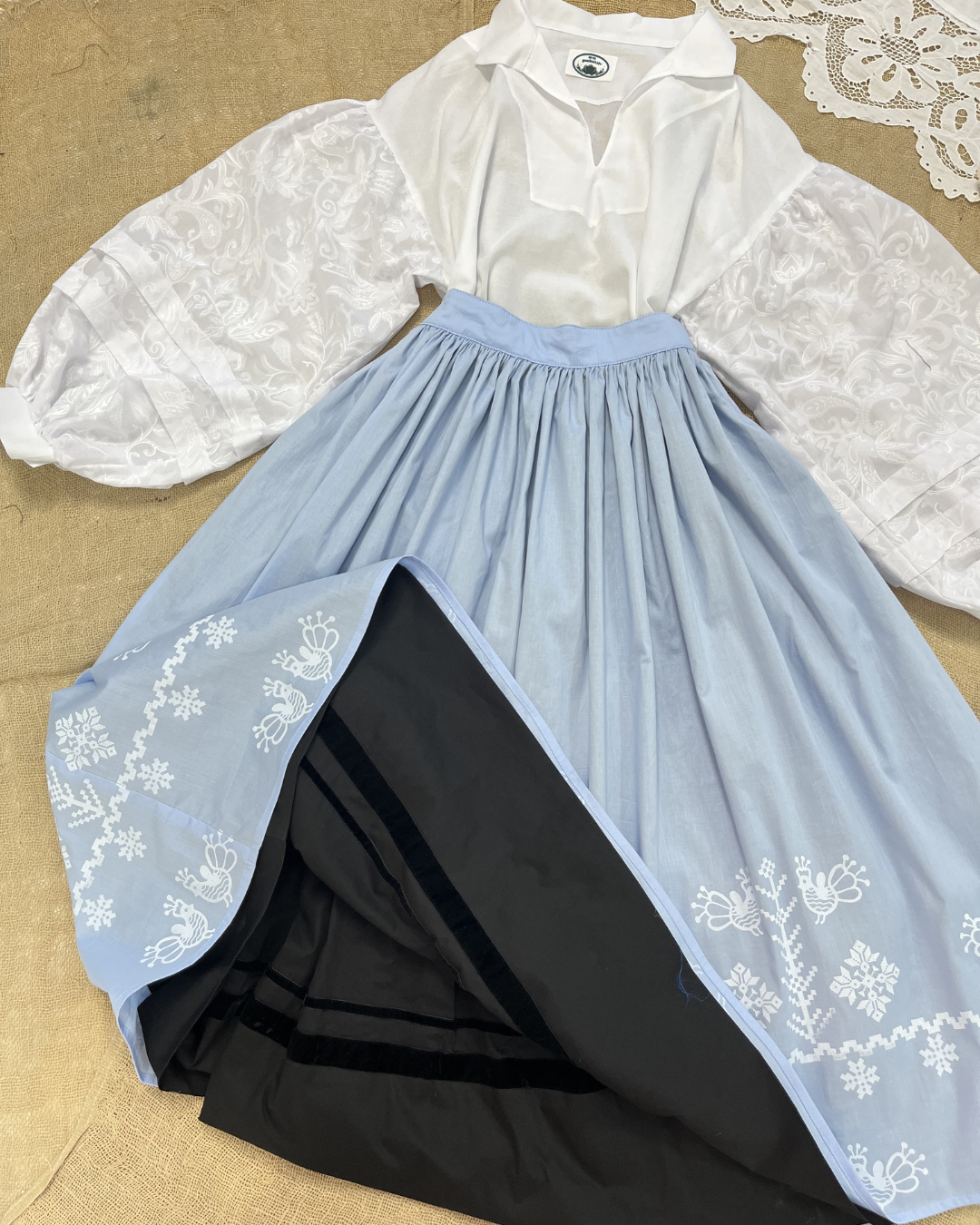 Спідниця двостороння з вибійкою, блакитна/чорна