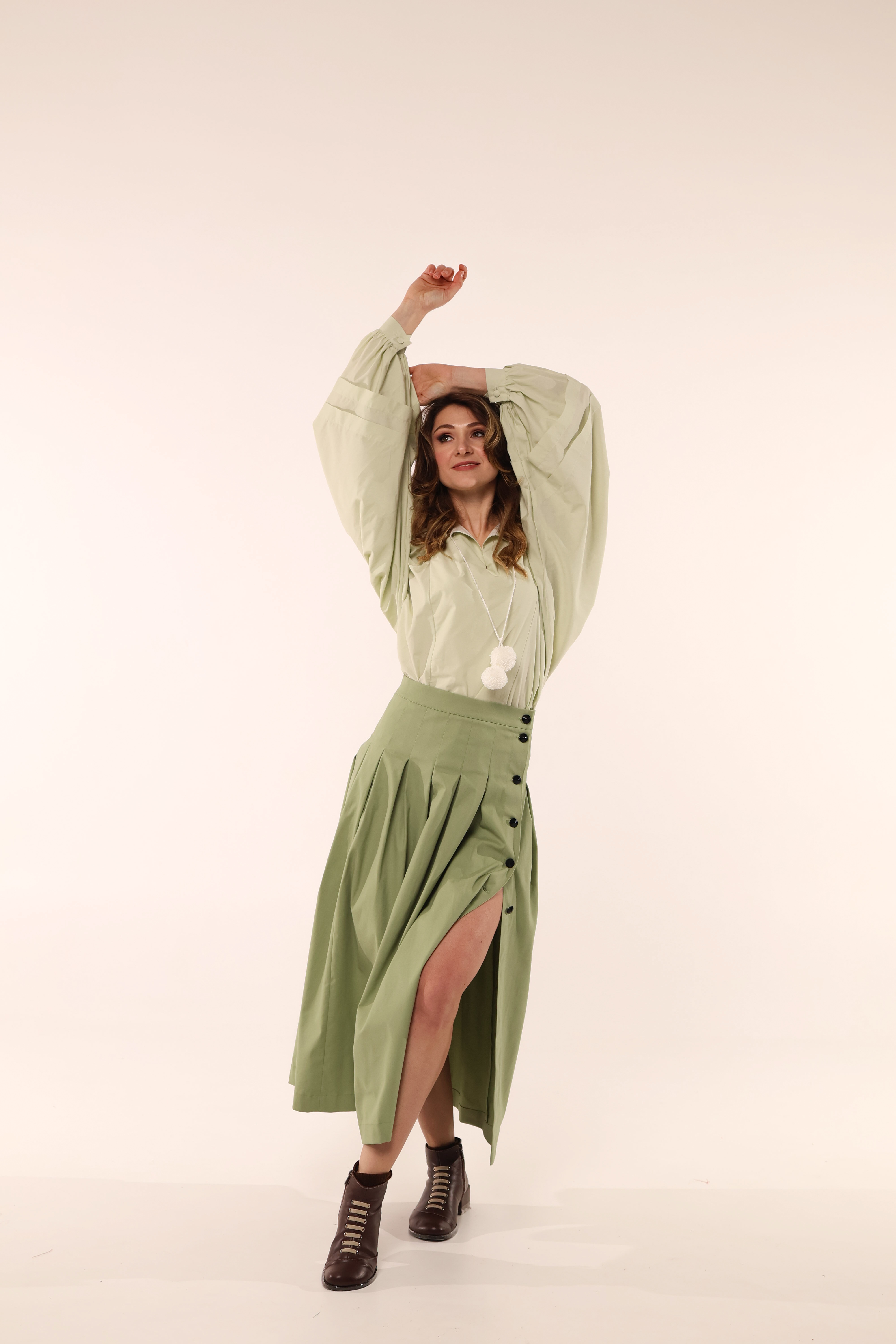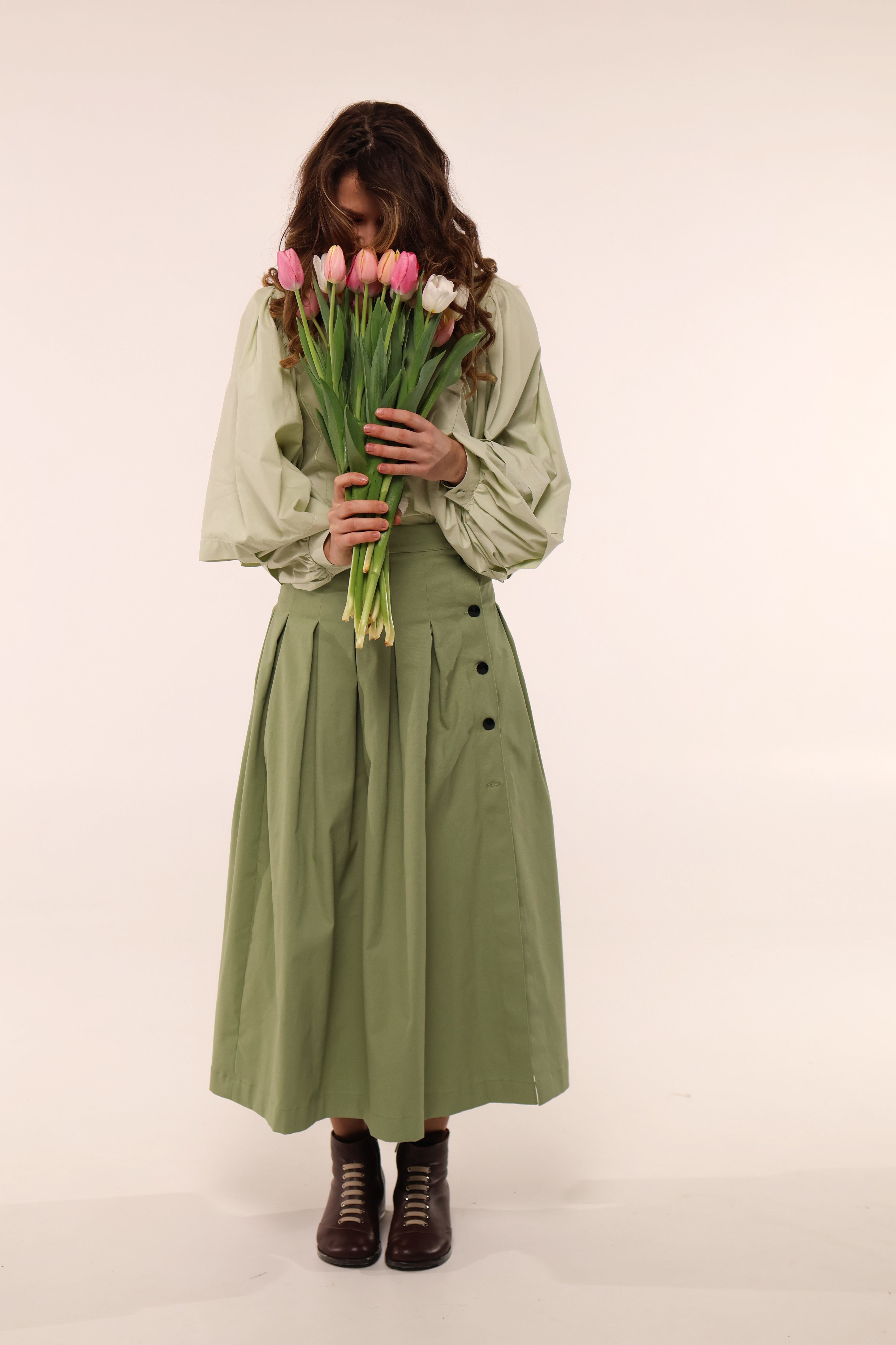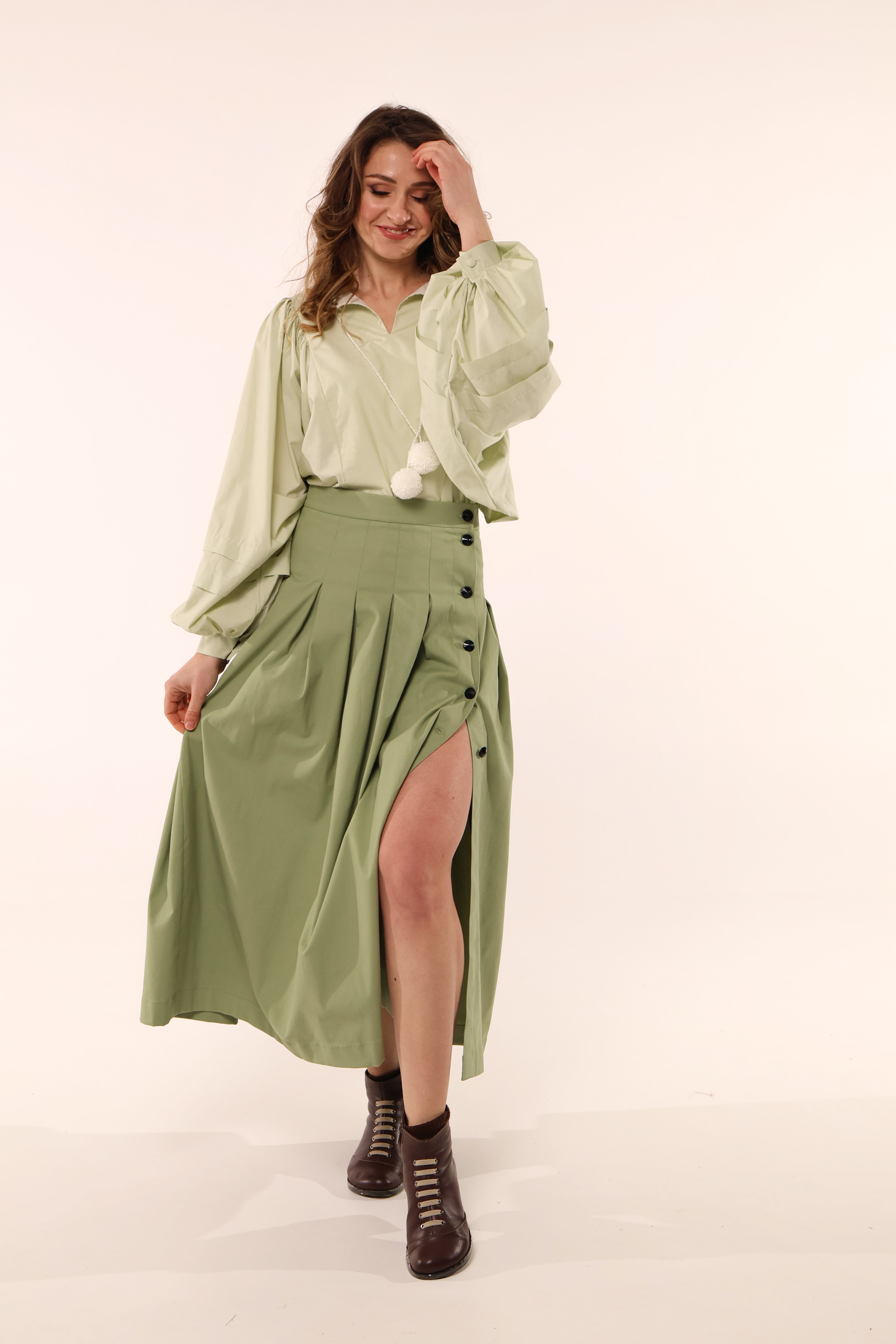 Спідниця з ґудзиками, зелена