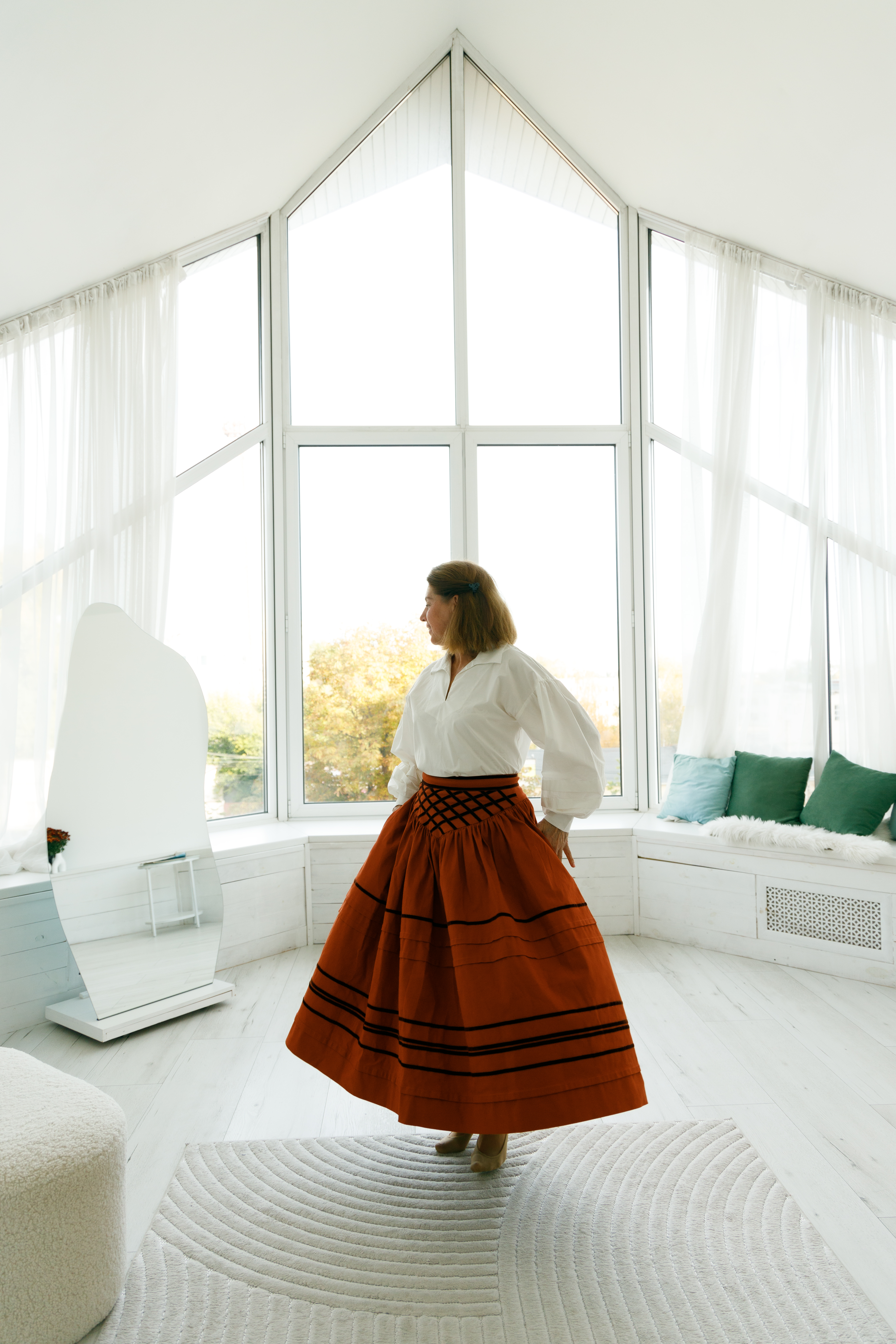 Особливу увагу привертає кокетка на талії з переплетенням стрічок, що створює цікавий акцент та додає оригінальності.