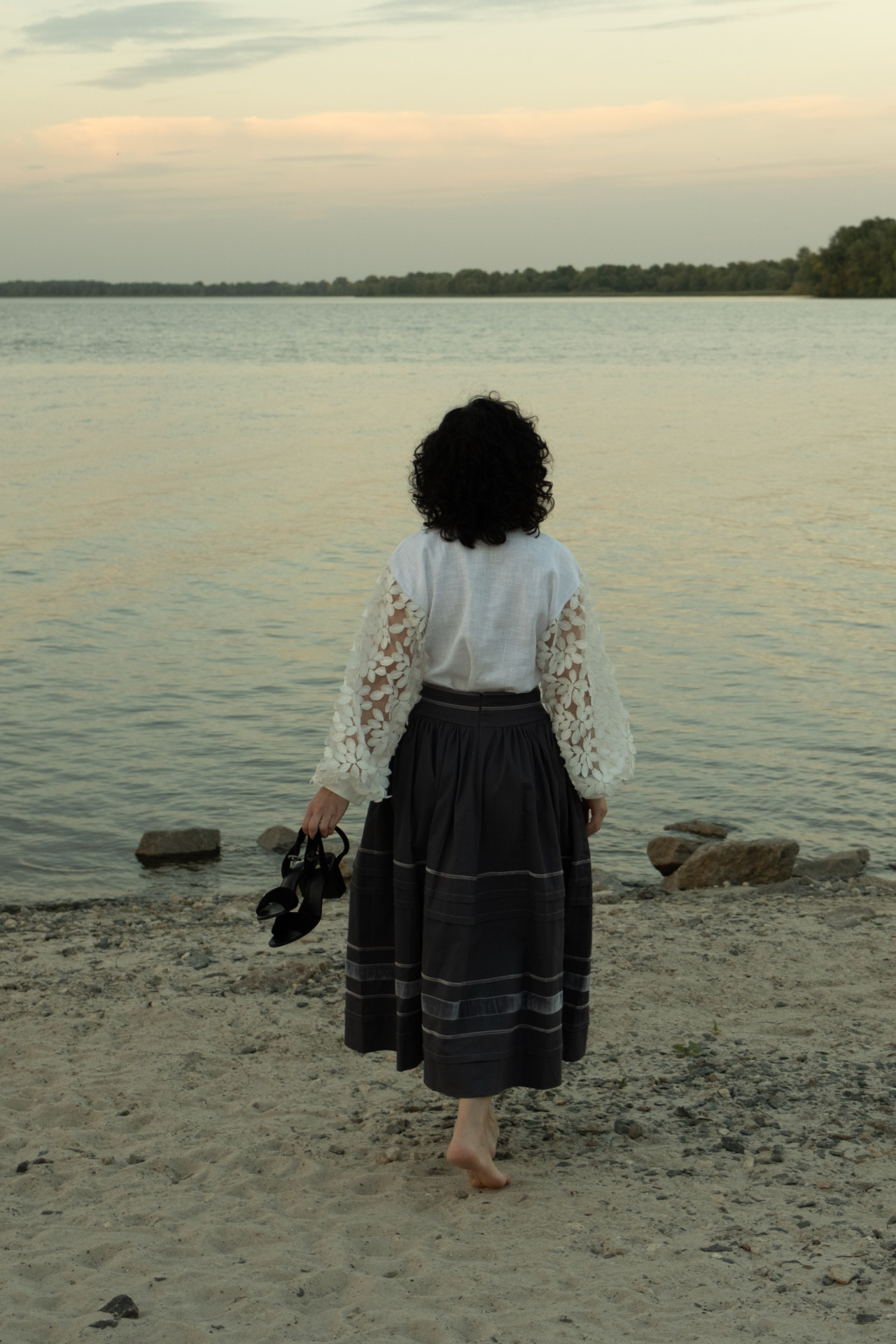 Спідниця зі стрічками на кокетці сіра "Марія"