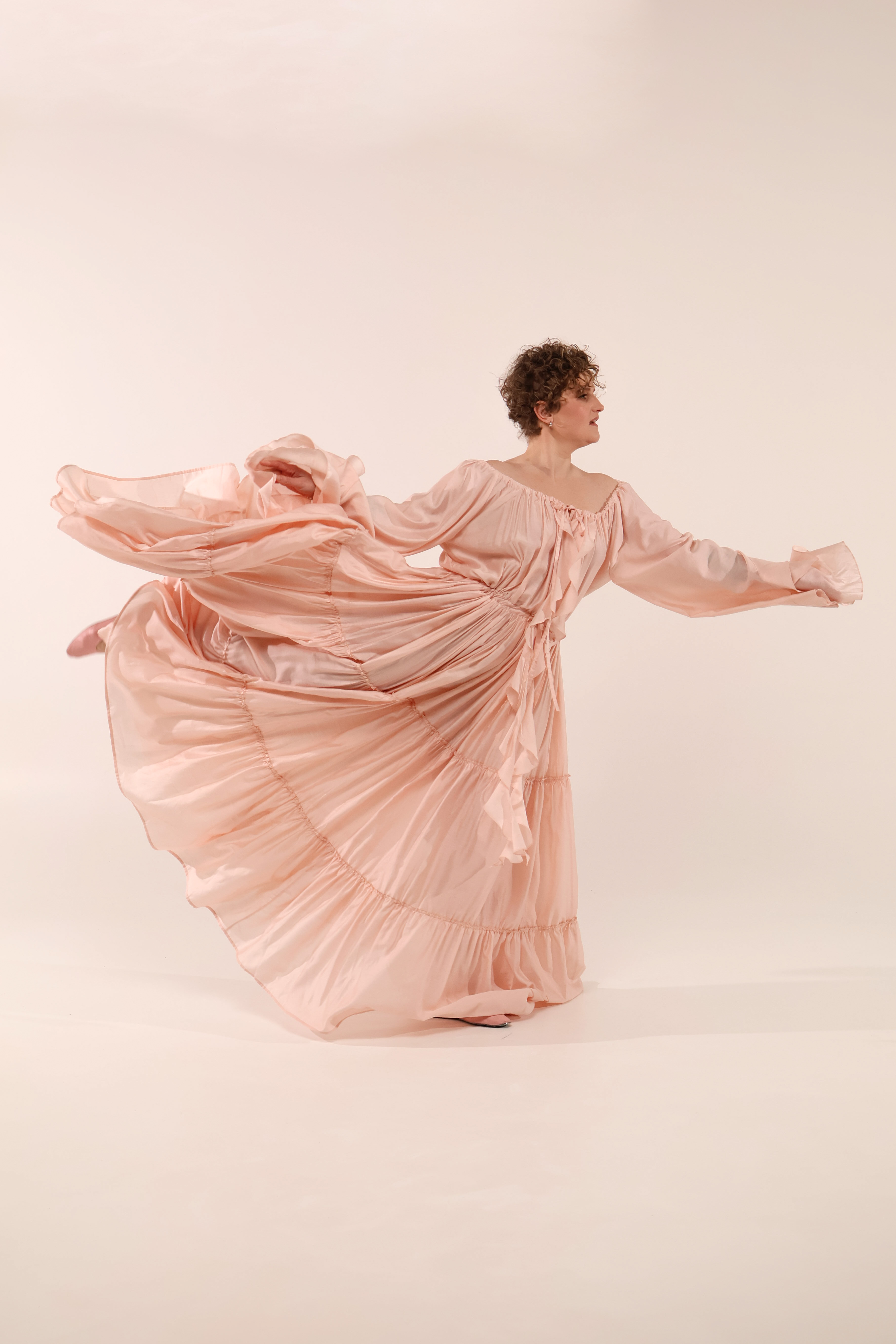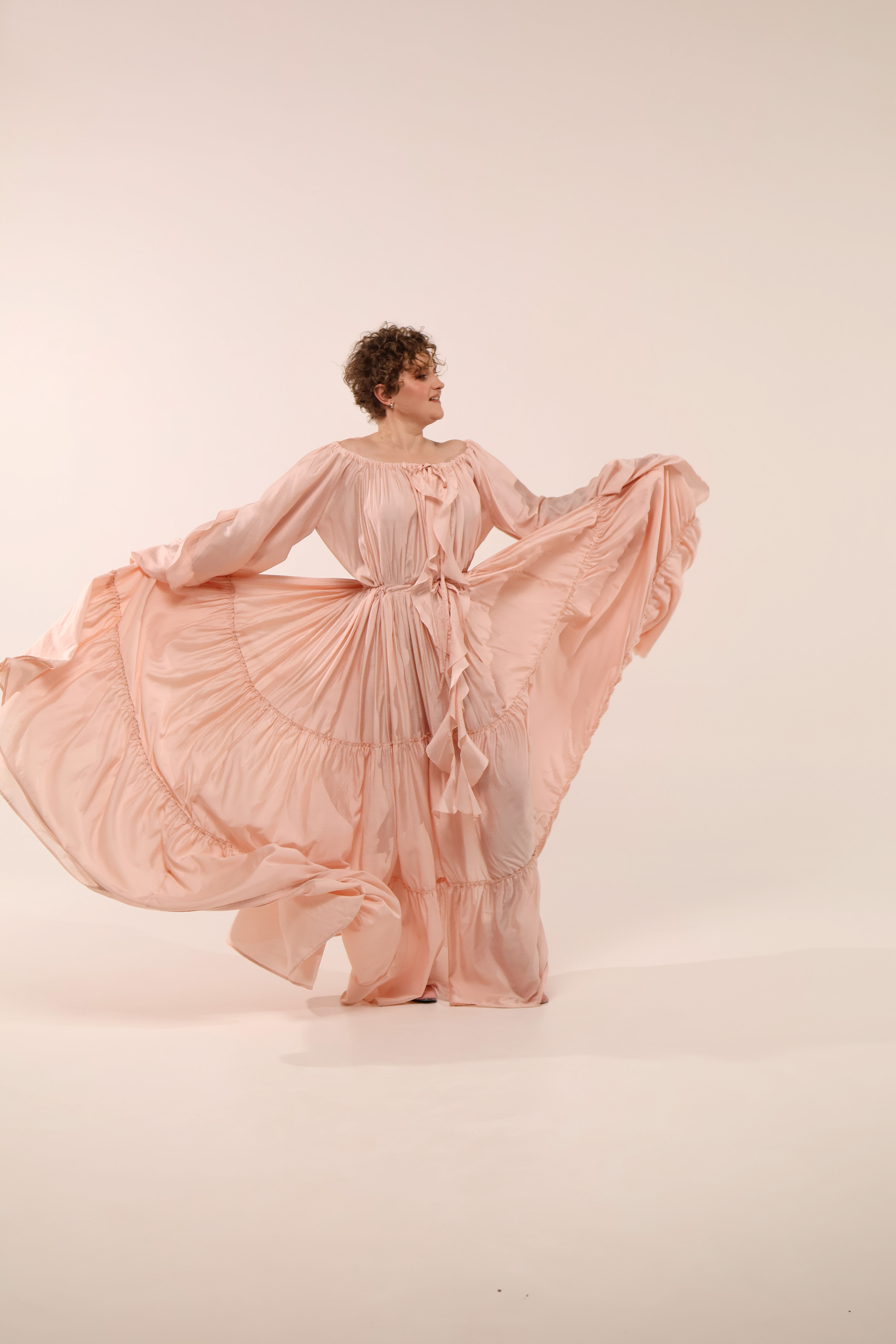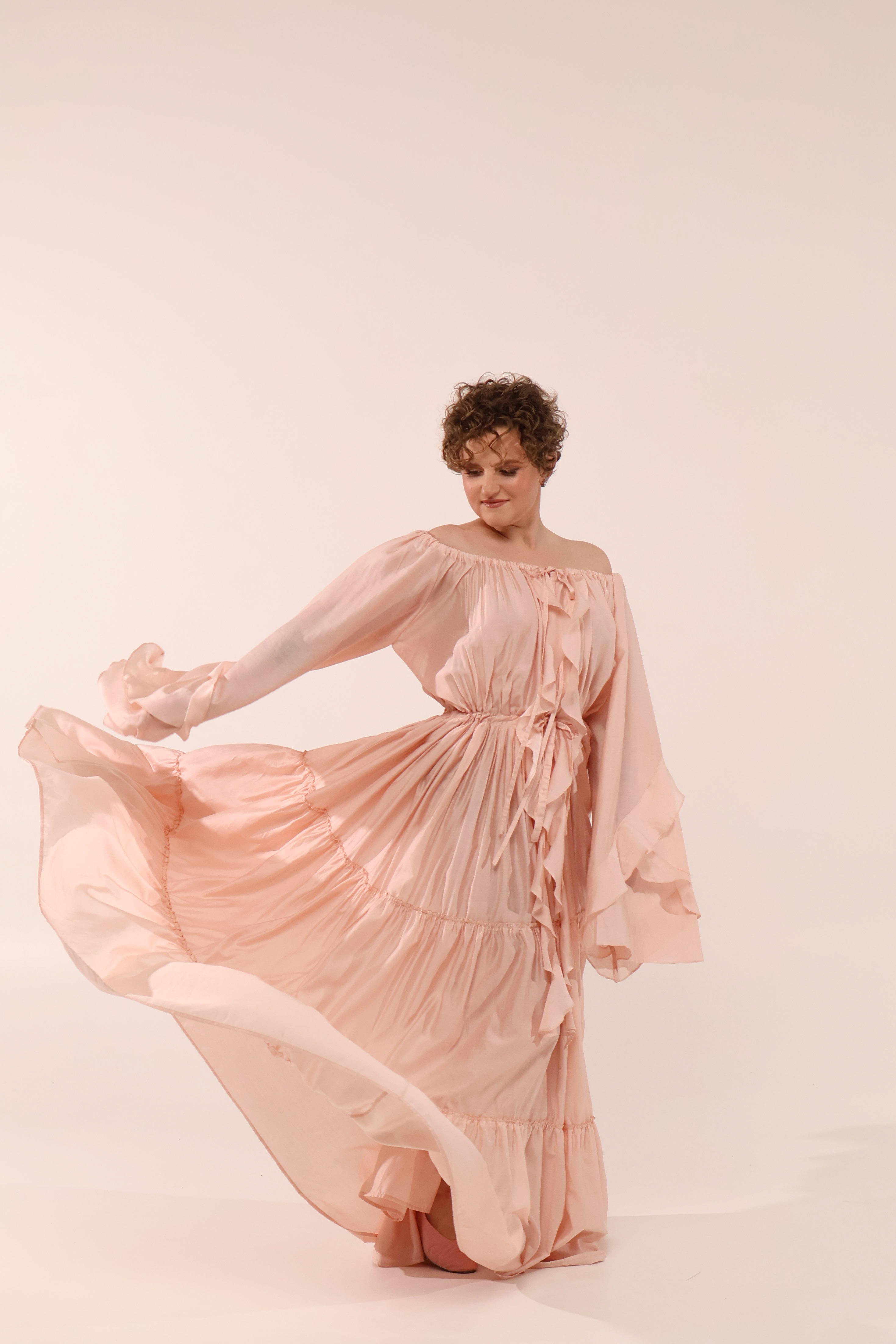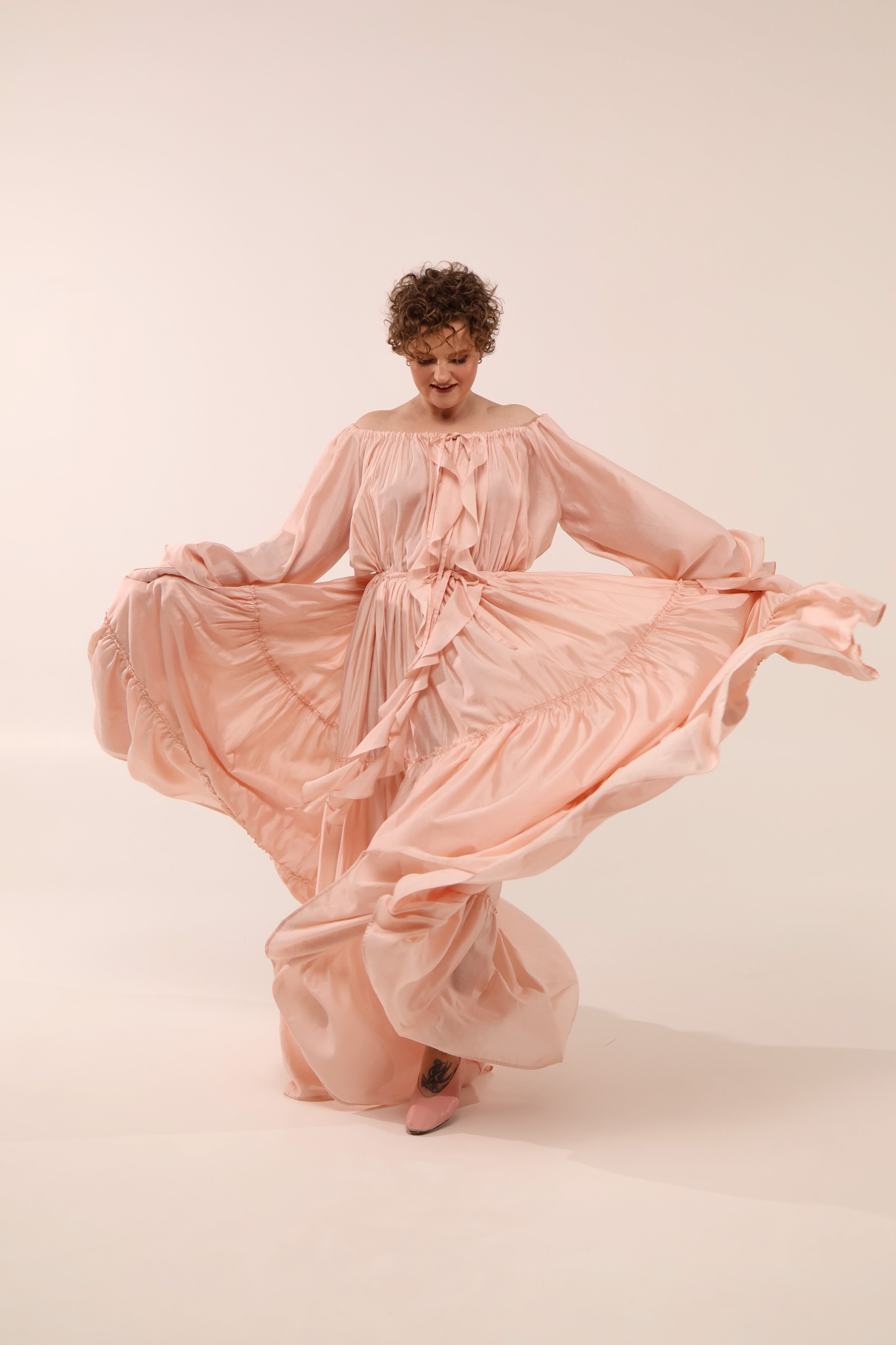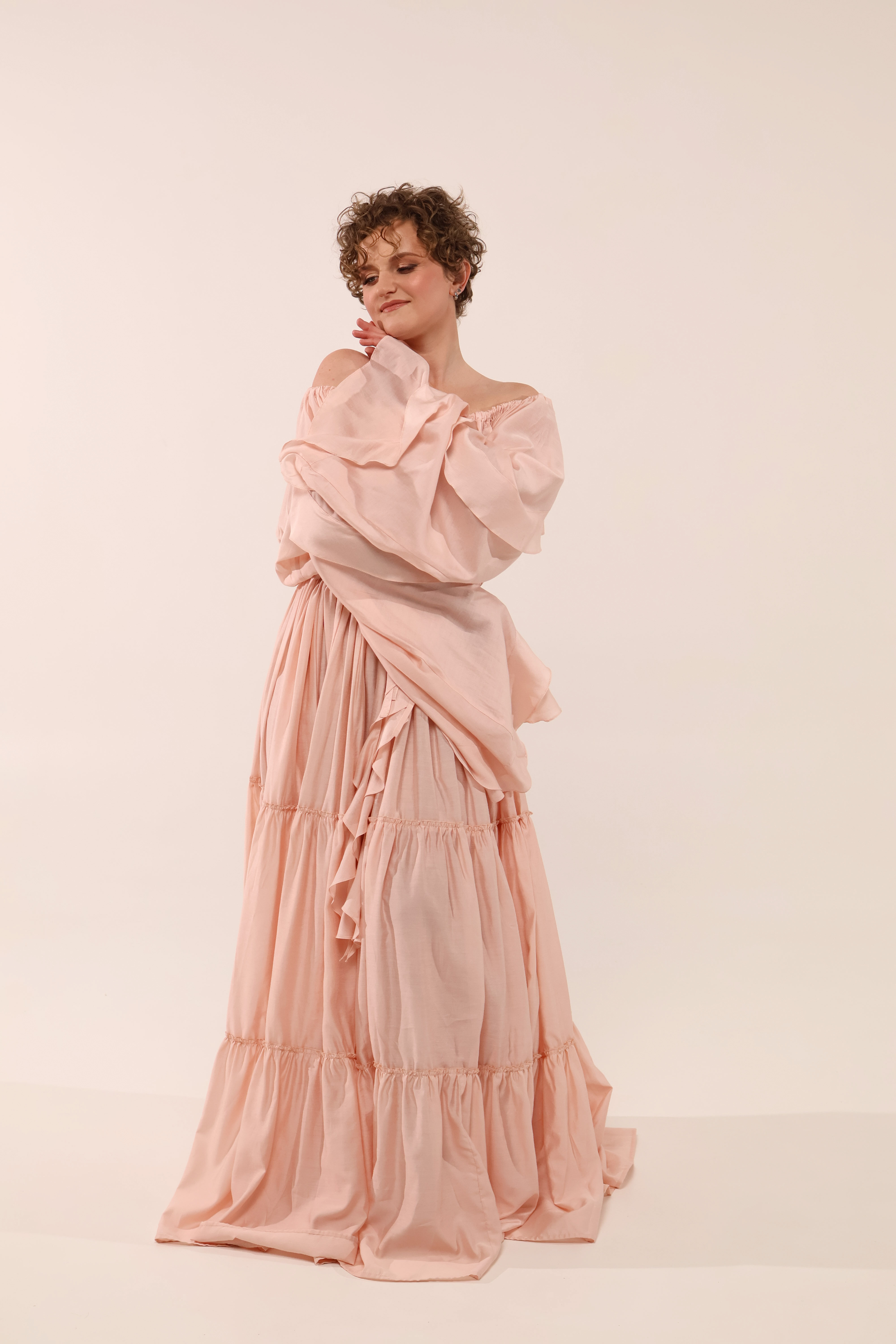 Для цієї сукні ми шукали ту саму, ідеальну тканину. Таку, в якій буде комфортно і яка максимально підкреслить цю ідею легкості та ніжності.