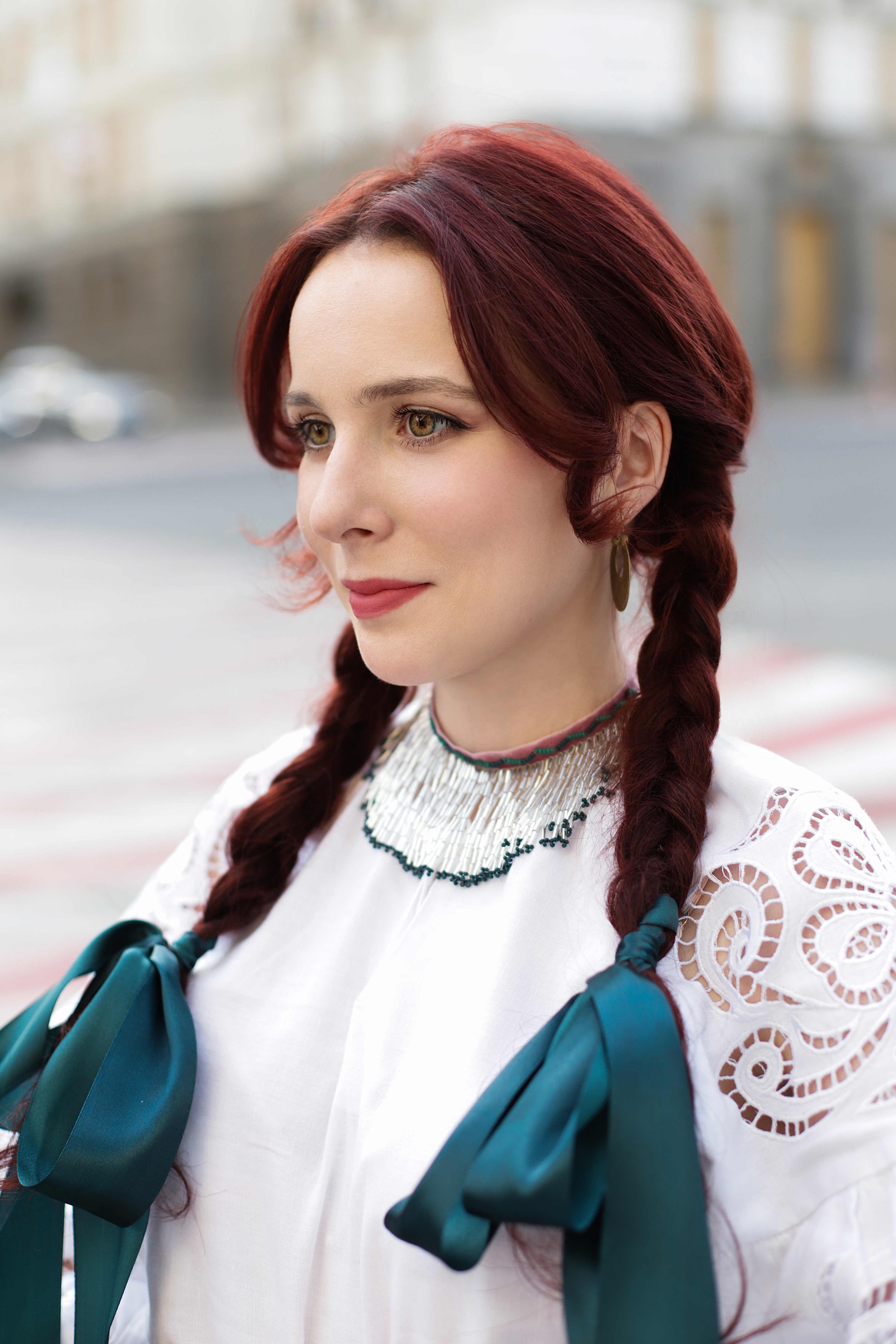 Батистова сорочка з пишними рукавами, вишитими у техніці рішельє. Легенька, дихаюча, комфортна, а ці ажурні узори додають всьому образу особливої ніжності та витонченості.