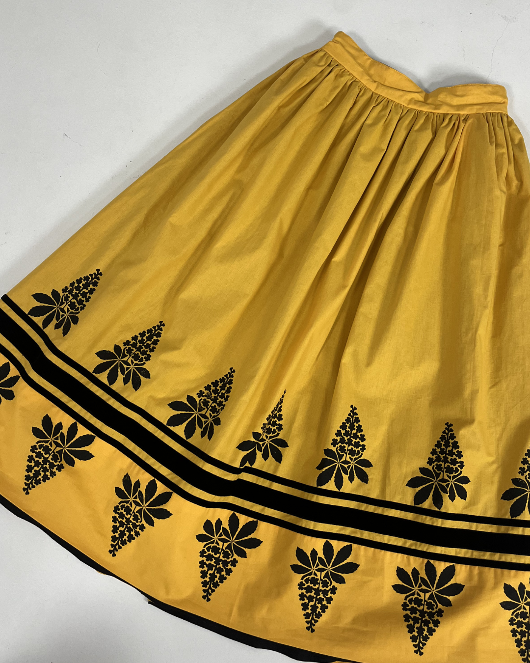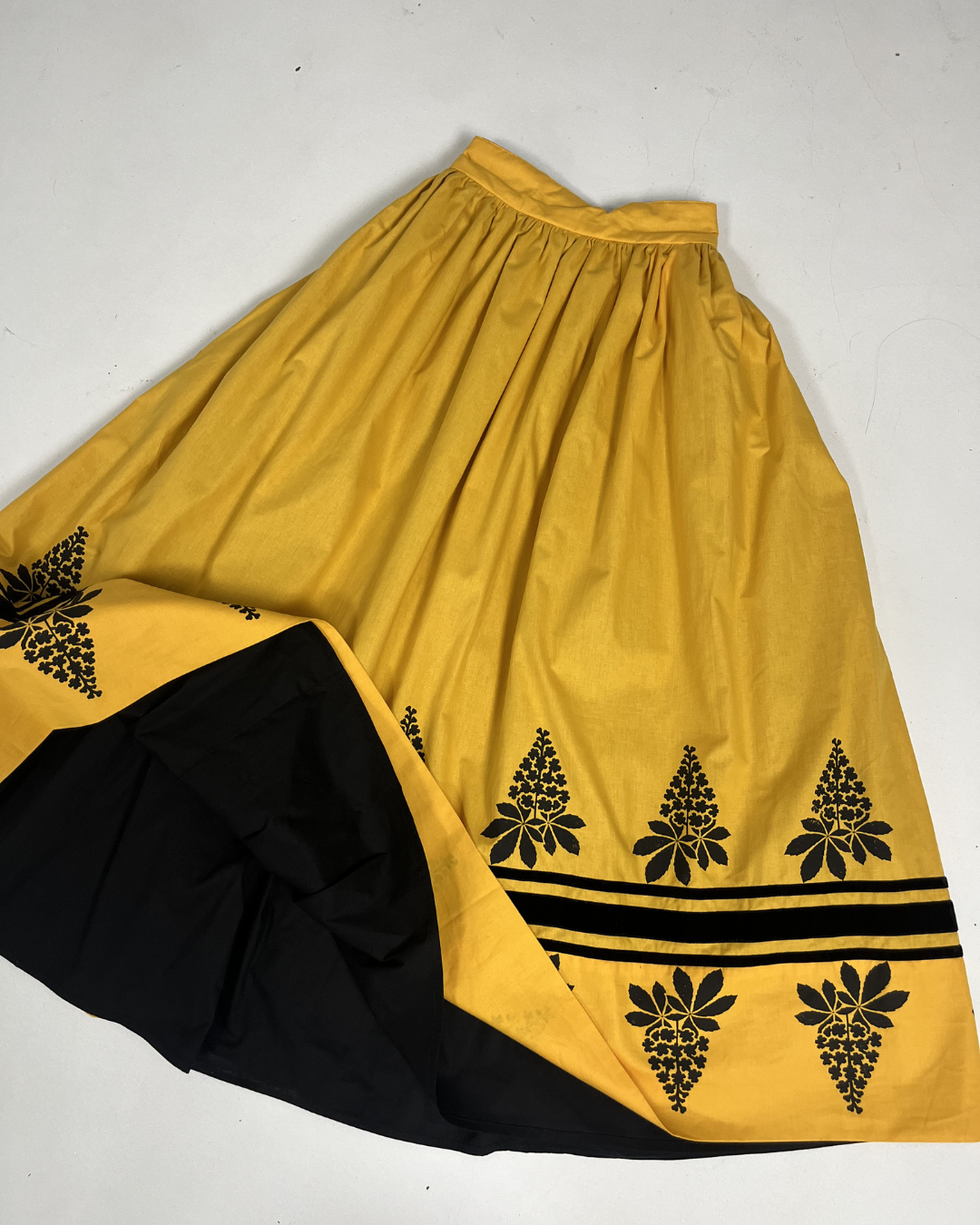 Спідниця двостороння на рівному поясі з вибійкою каштани жовта/чорна
