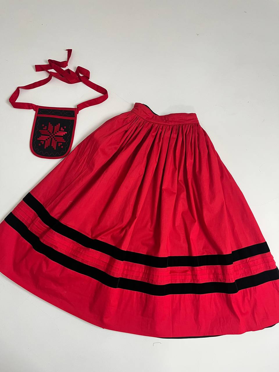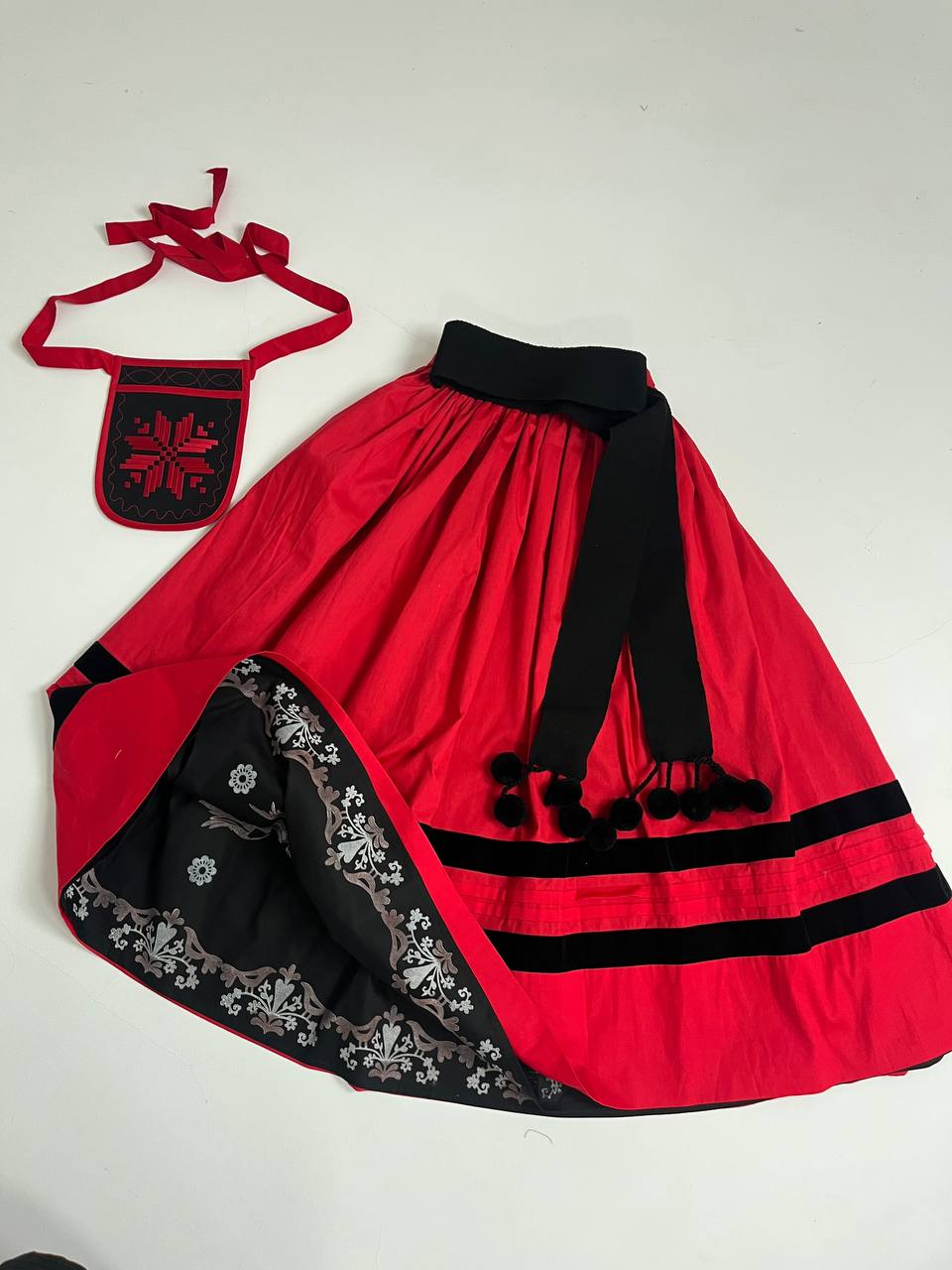 Спідниця двостороння на рівному поясі з вибійкою Ластівки червона/чорна