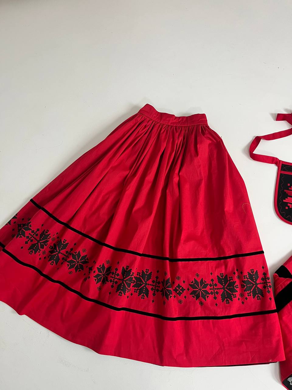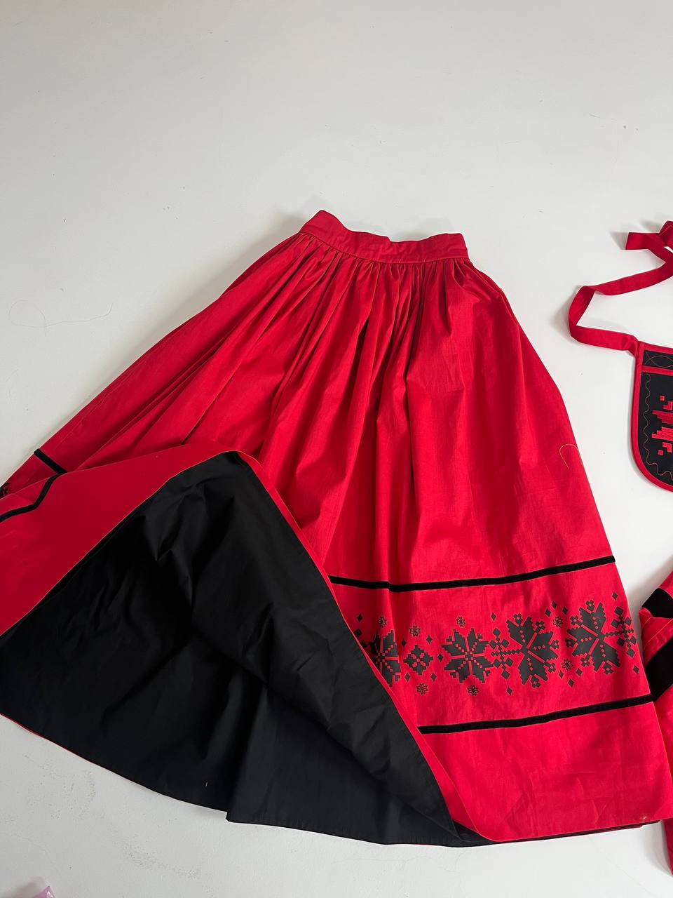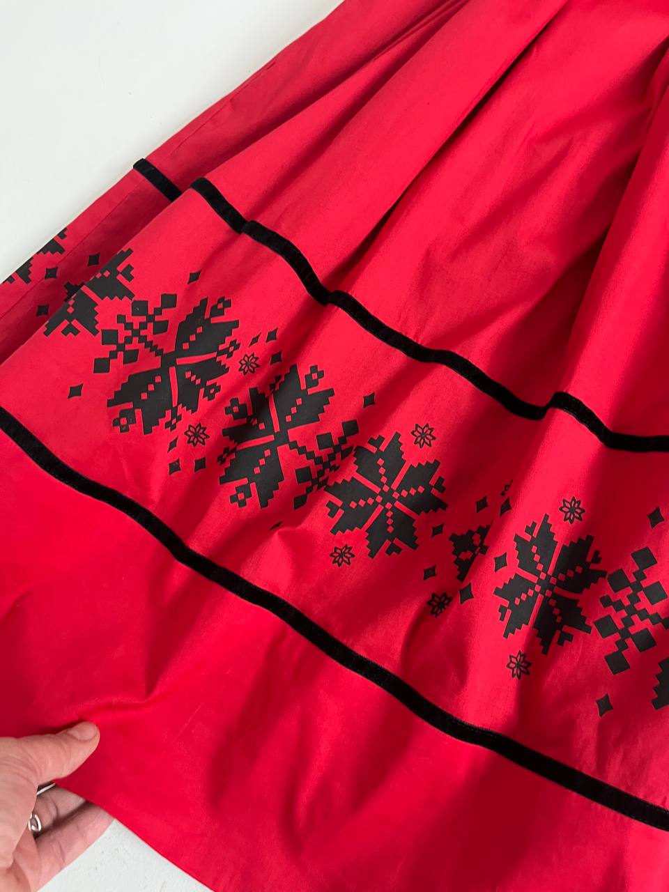 Спідниця двостороння на рівному поясі з вибійкою орнамент червона/чорна