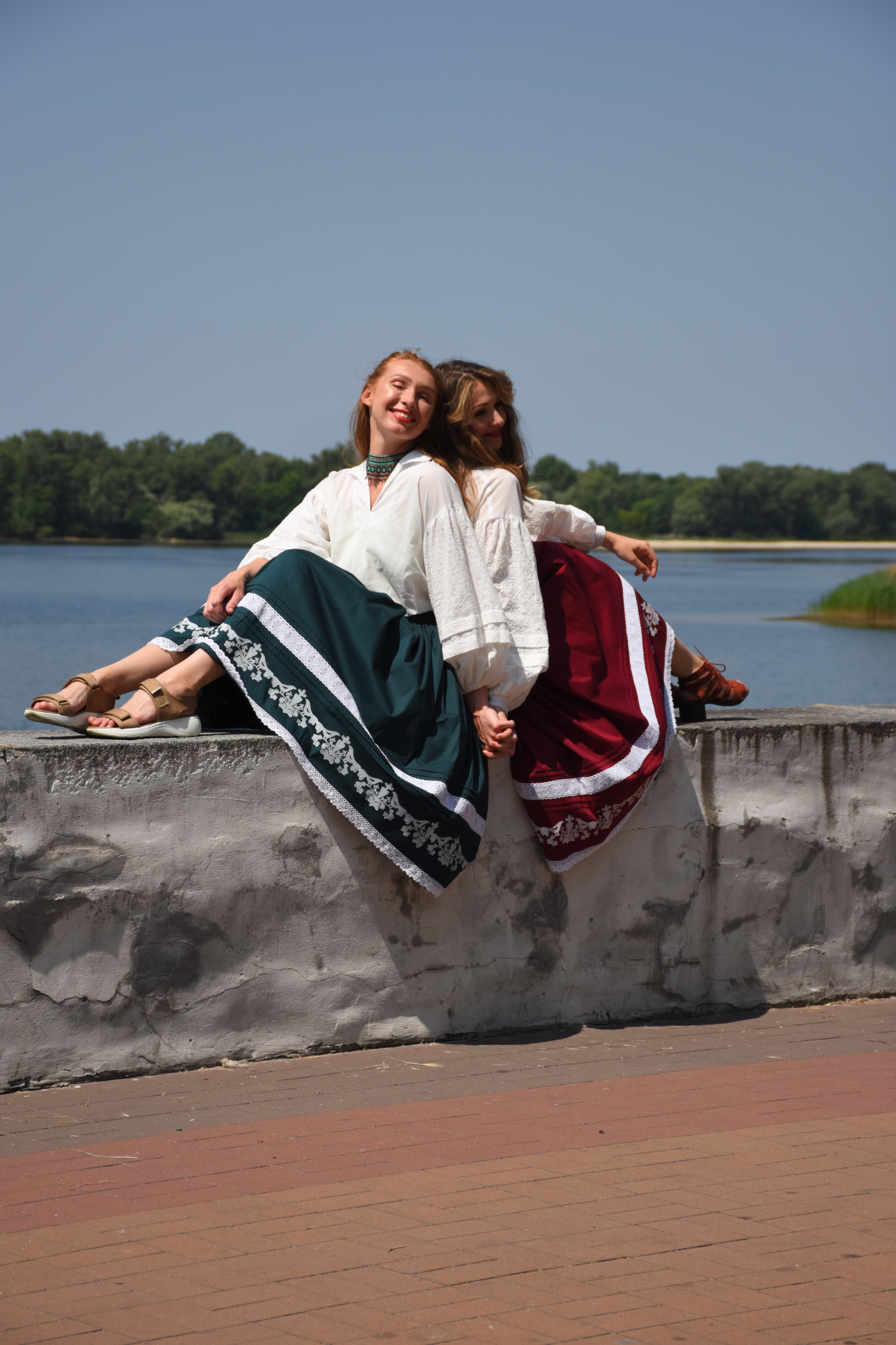 Спідничка оздоблена мереживом та защипами. Вибійка виконана фарбою, яка повністю проникає у волокна тканини - можна прати.
