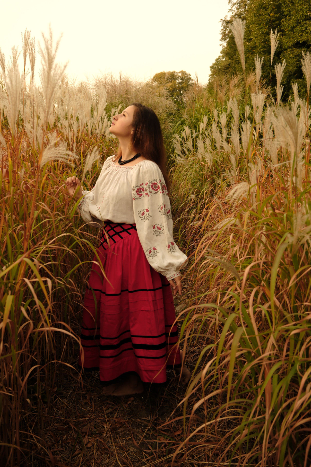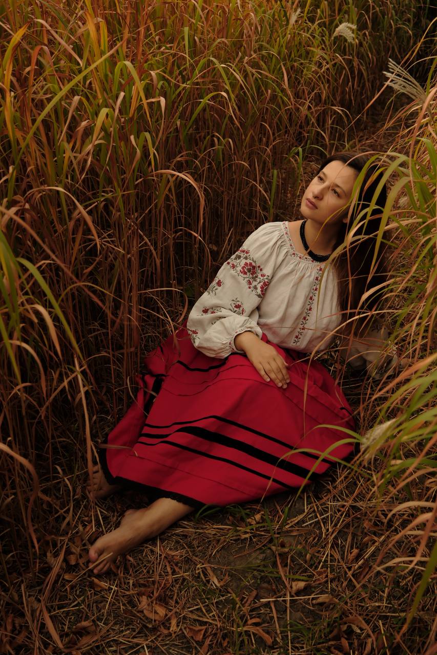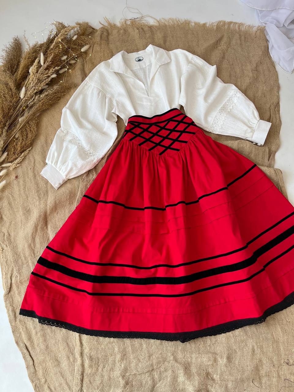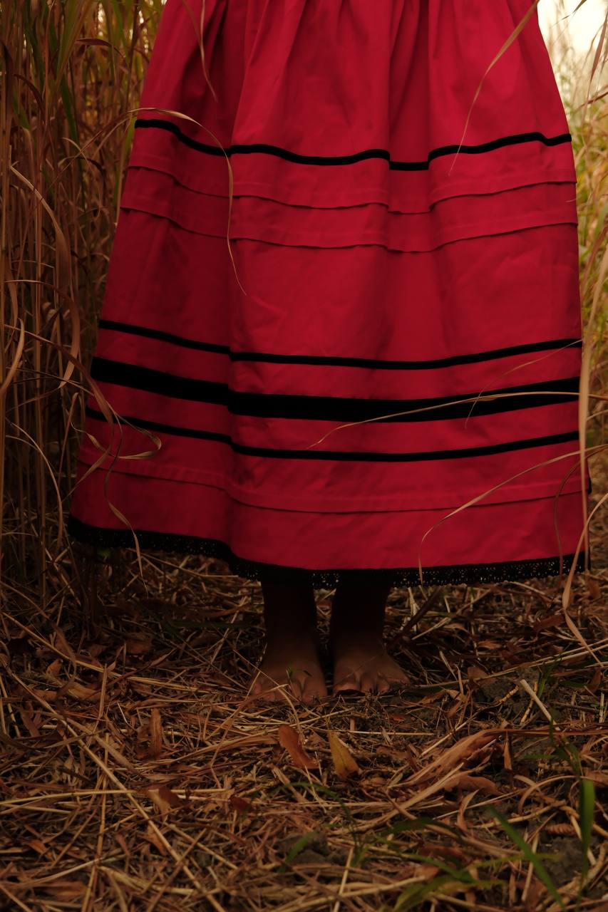 Спідниця зі стрічками на кокетці червона "Марія"