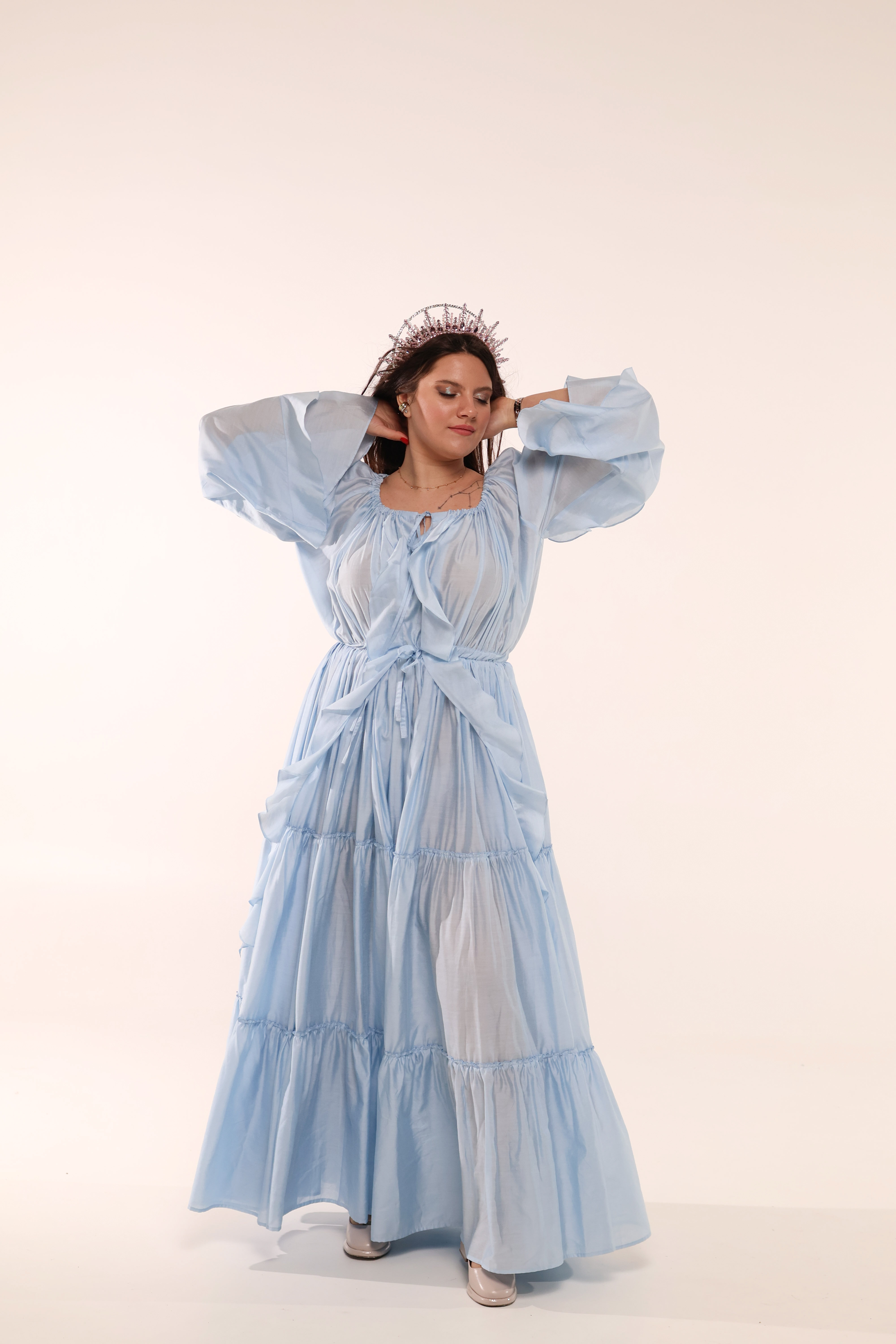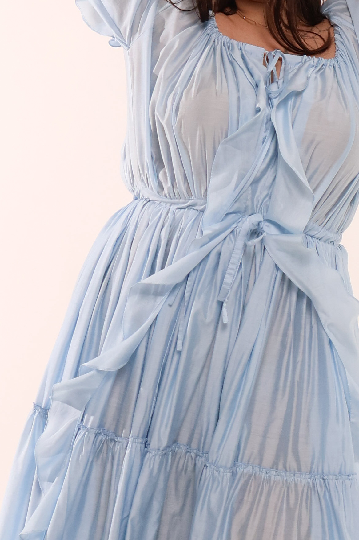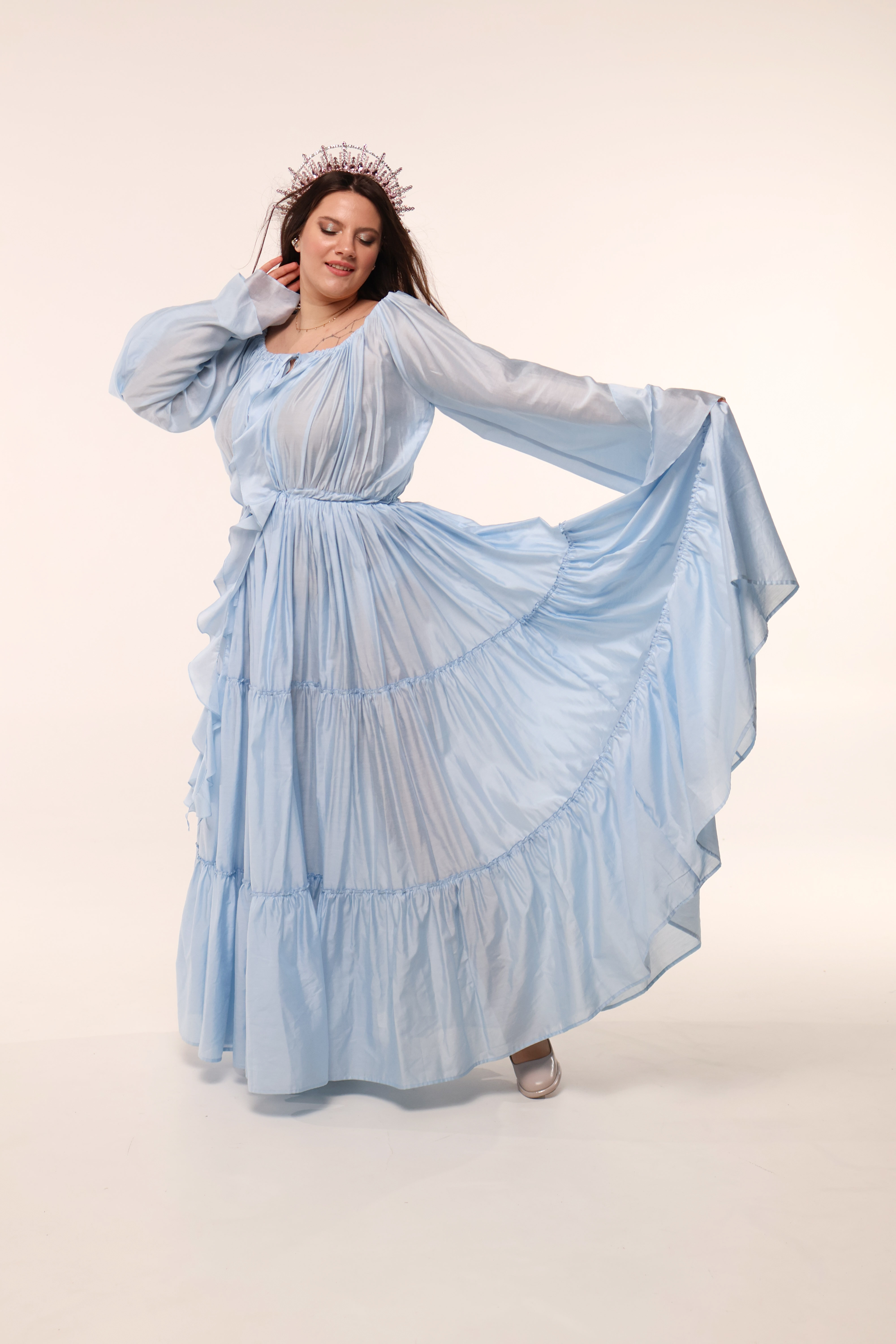 Для цієї сукні ми шукали ту саму, ідеальну тканину. Таку, в якій буде комфортно і яка максимально підкреслить цю ідею легкості та ніжності.