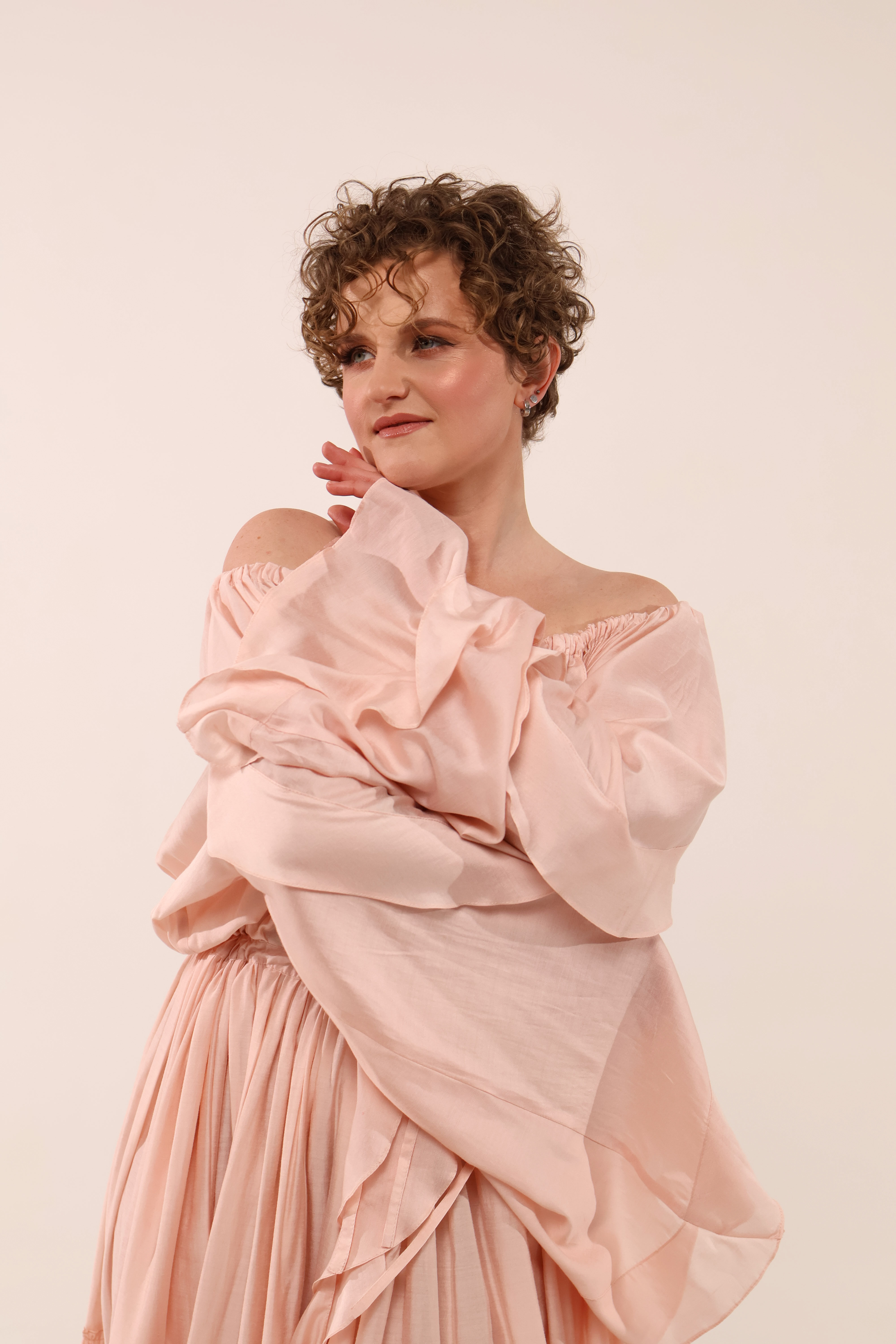 Для цієї сукні ми шукали ту саму, ідеальну тканину. Таку, в якій буде комфортно і яка максимально підкреслить цю ідею легкості та ніжності.